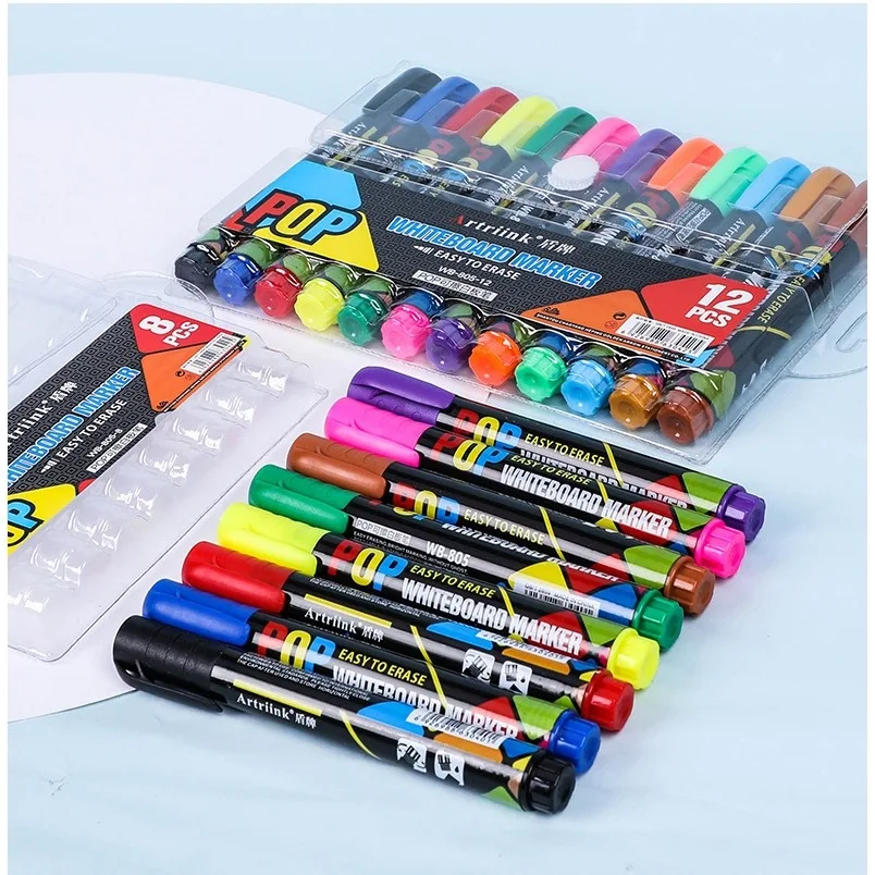 Artriink Erasable Whiteboard Markers 8colors / 12colors Refill Ink Office School Home Student Children's Drawing Marker Pen art
