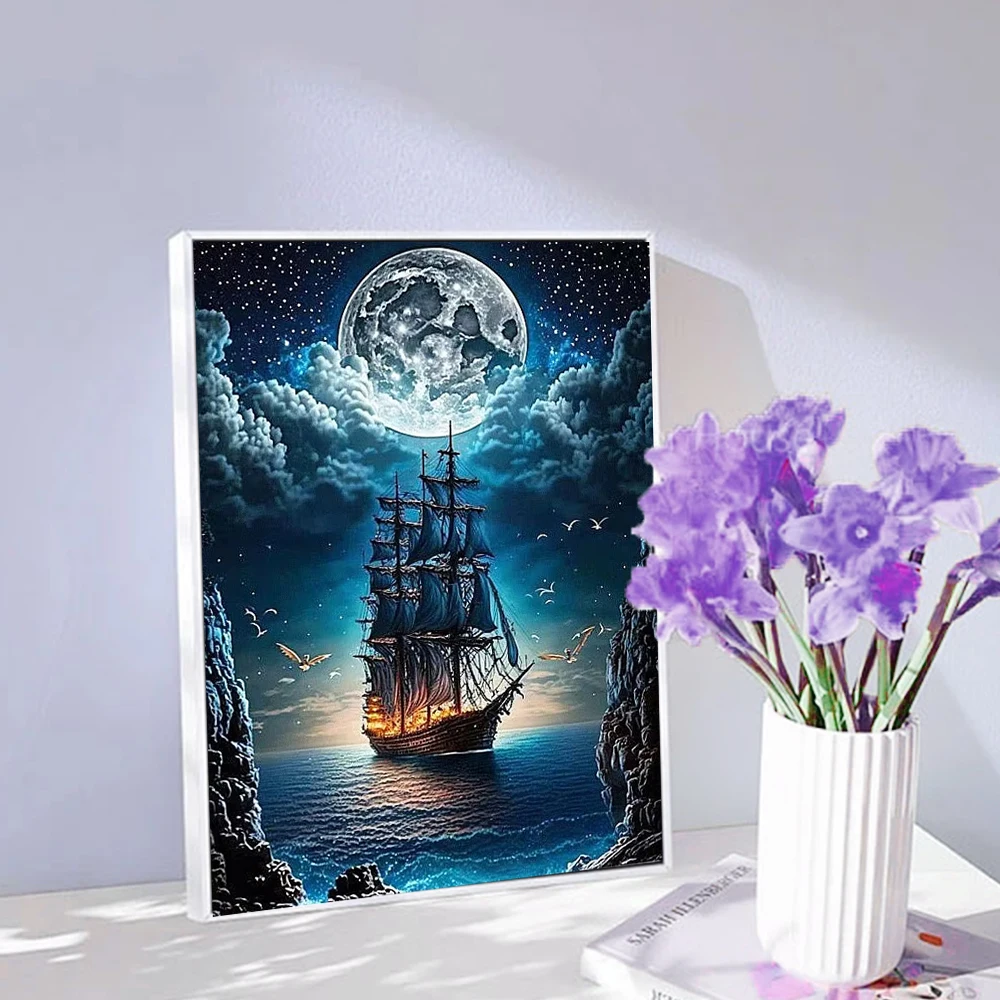 Huacan Full Diamond Embroidery Landscape Cross Stitch Kits DIY Diamond Mosaic Moon Rhinestone Pictures Gift Decorative Paintings