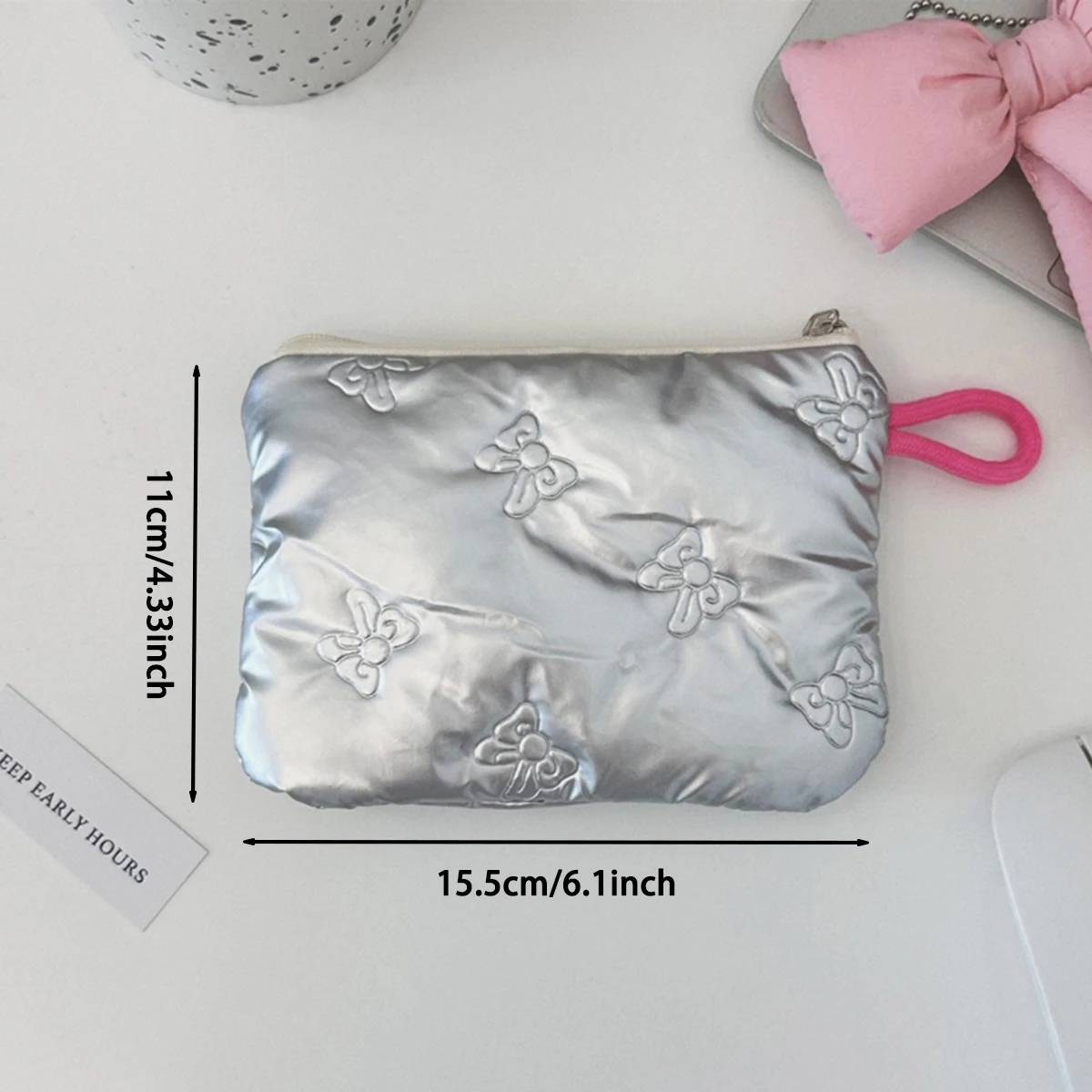 Silver Lingge Bow Pattern Coin Purses Small Canvas Coin Wallet Lady Girls Earphone Coin Key Money Storage Bag Zipper Pouch