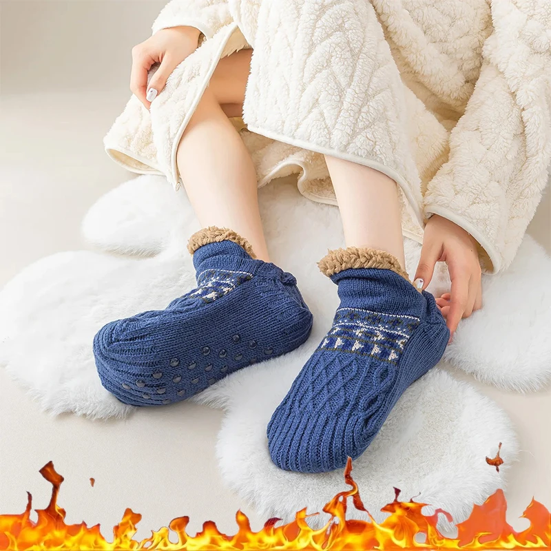 1 pair of autumn and winter socks fleece lambswool non-slip solid color floor socks warm women's socks sets moon socks