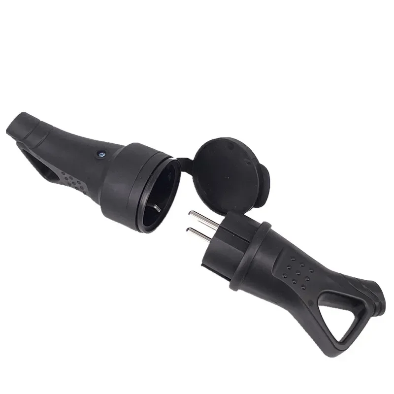 EU Rubber Waterproof Socket Plug Electrial Grounded European Connector With Cover IP54 For DIY Power Cable Cord 16A 250V