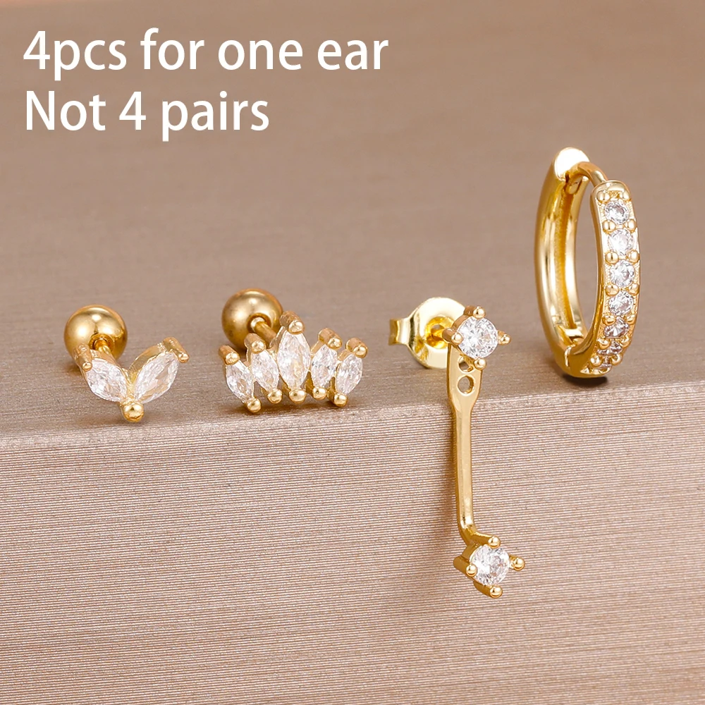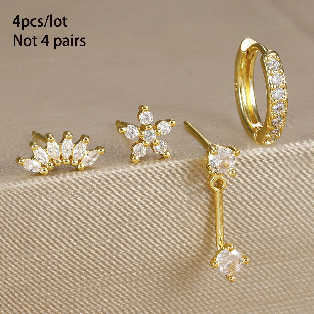 4PCS Stainless Steel Circle Huggie Hoop Earrings Set for Women Gold Color Unique Zircon Flower Stud Earring Piercing Jewelry