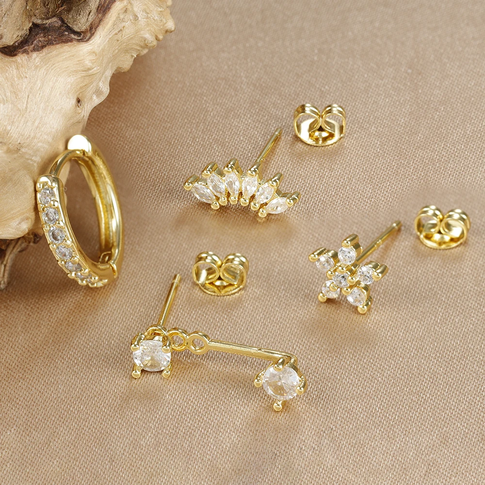 ALI shop - search results ... ... 4PCS Stainless Steel Circle Huggie Hoop Earrings Set for Women Gold Color Unique Zircon Flower Stud Earring Piercing Jewelry ::: 2021 ::: :::