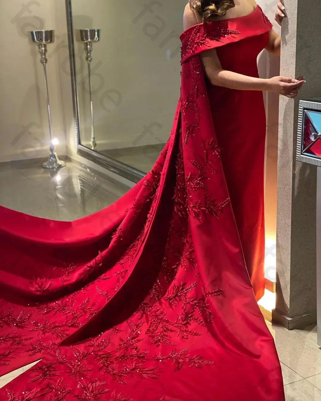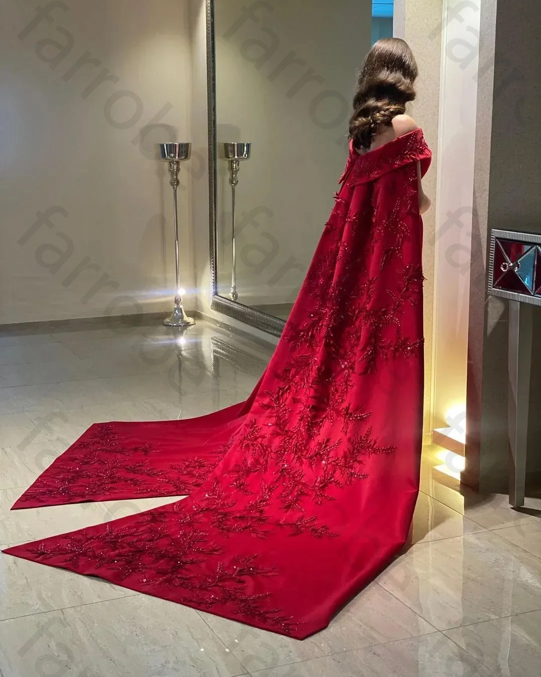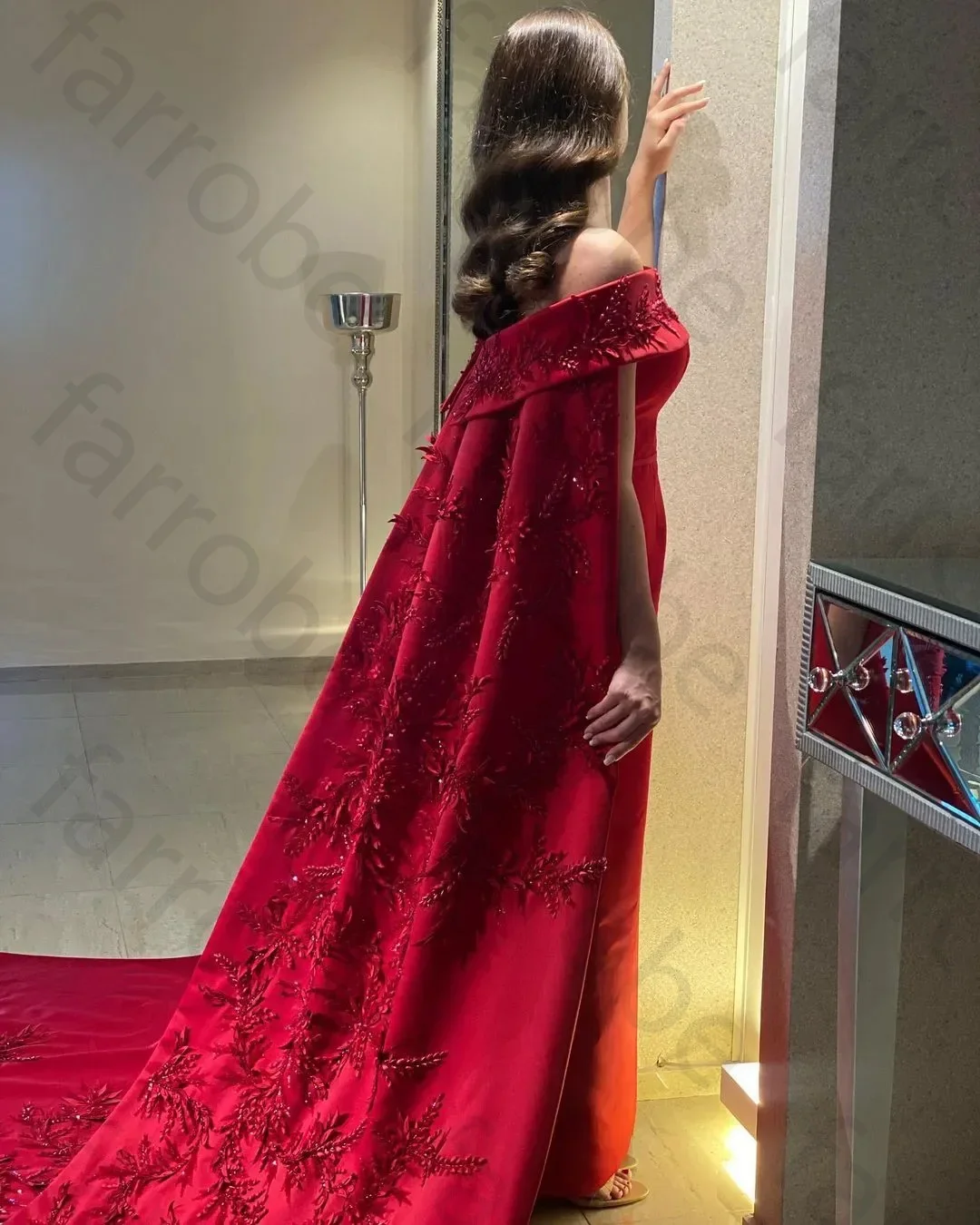 Customized Ankle Length Sheath Evening Party Gowns Women Beaded Applique Long Wrap Prom Dresses Zipper Back Vestidos Des