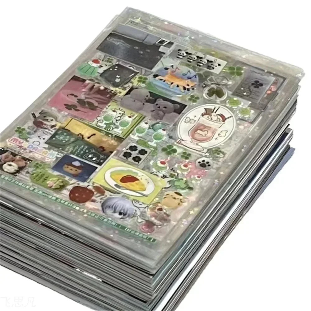 Glitter Stickers Transparent PET Cut Film Toploader Scrapbooking Deco Stickers Kawaii Journal Stickers 10pcs