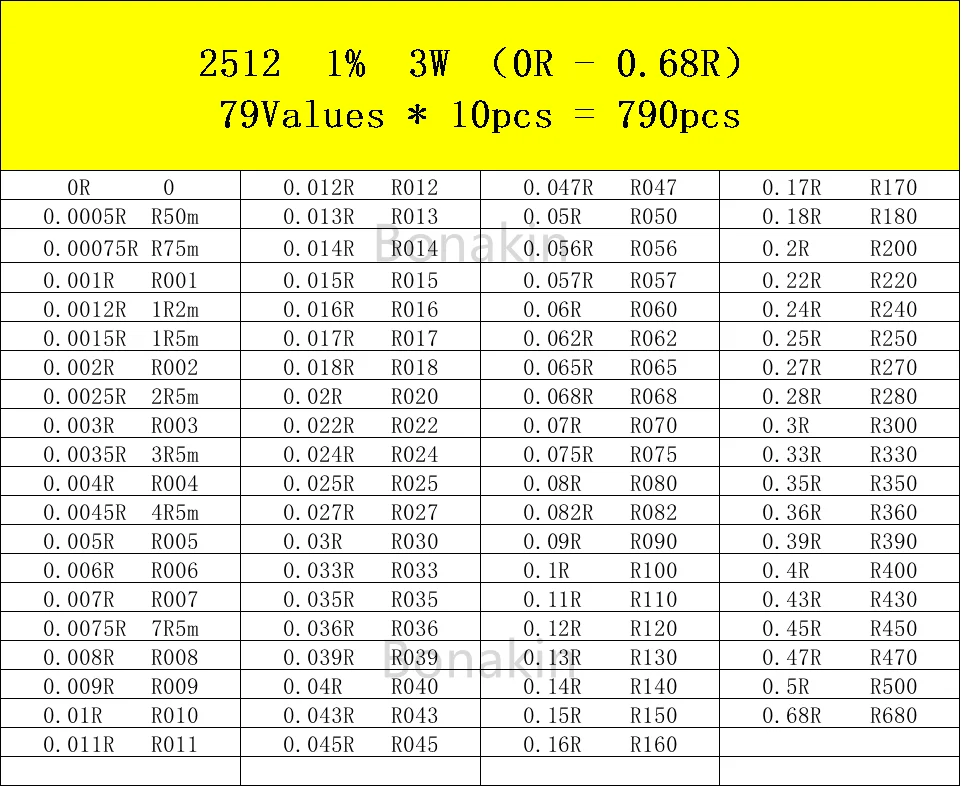 20pcs 2512 SMD Alloy Resistor 2mR 0.005R 0.01R 0.015R 0.02R 0.025R 0.03R 0.04R 0.05R 0.1R 0.15R 0.22R 0.3R 0.5R 0.62R 0.75R0.82R