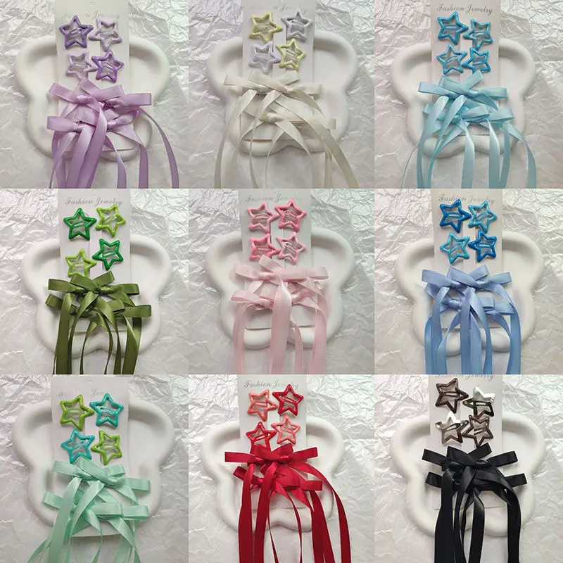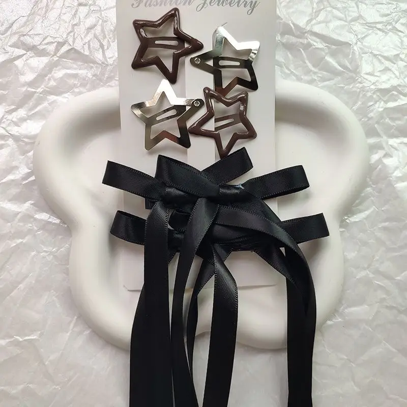 aliexpress , ali , shop , ali shop , online , store , online shop , online store , buy , sell , 6-piece Set of Women's Hair Accessories, Starry and Bow Set, Ballet Style Bow Ribbon Ribbon Hair Clip, Double Ponytail Ribbon Br