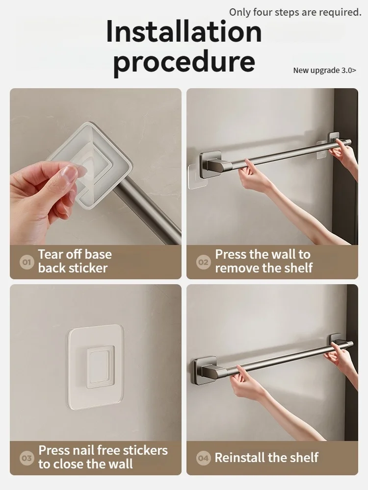 No Need To Drill Walls For Installation Bathroom Towel Bar/Hook/Towel Rack/Kitchen Rag Rack Bathroom Accessories