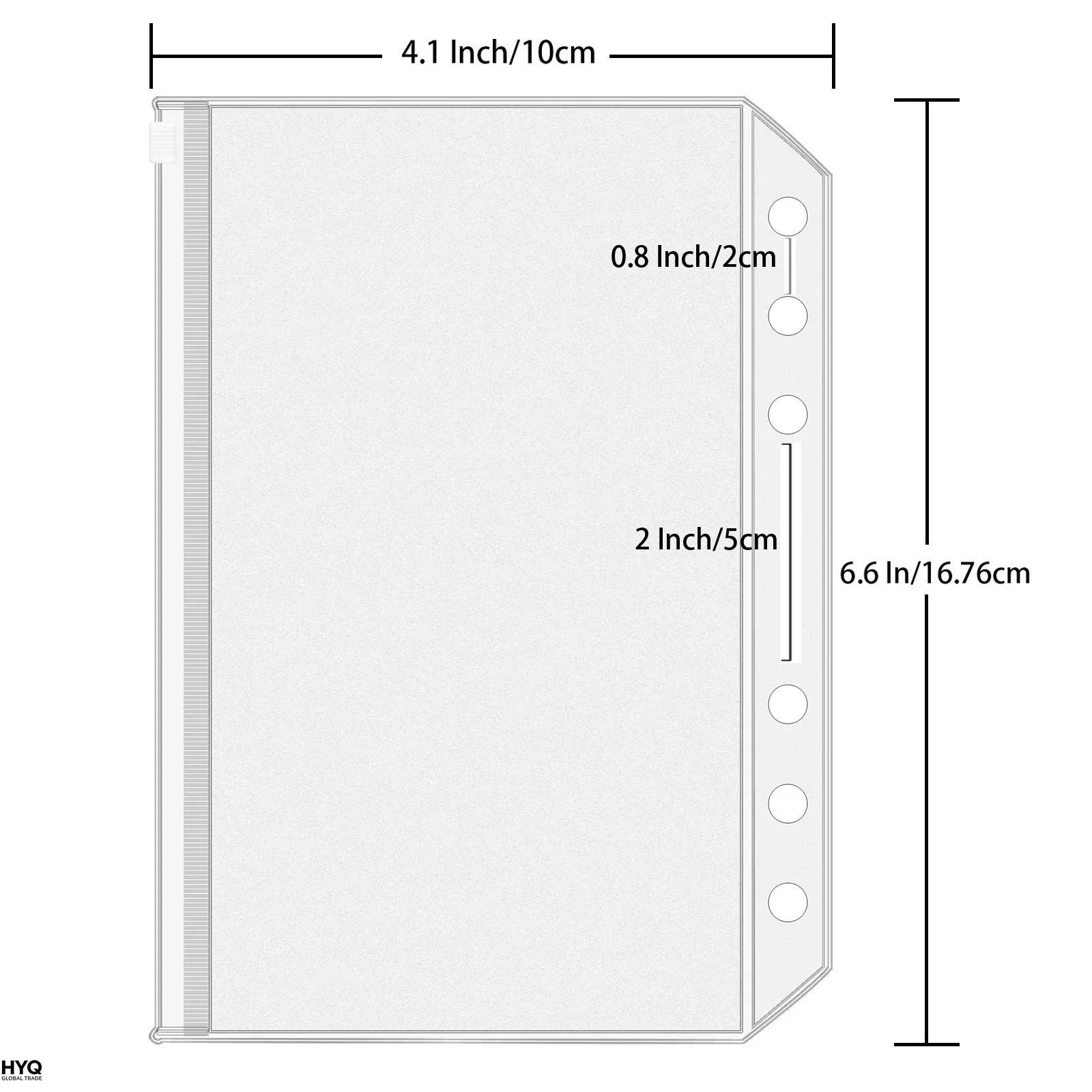 6 Holes A6 Binder Pockets Clear Zipper Folders for 6 Ring Loose Leaf Notebook Waterproof PVC Organizer 10PCS