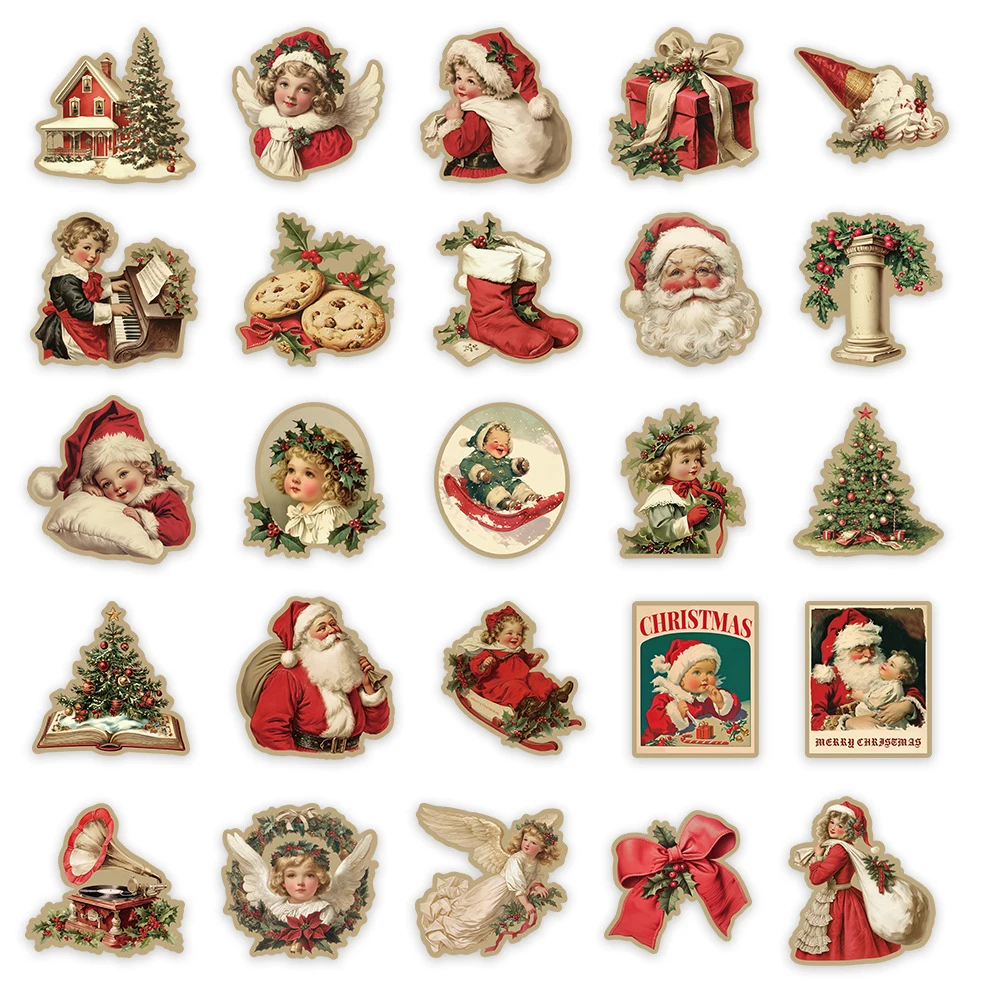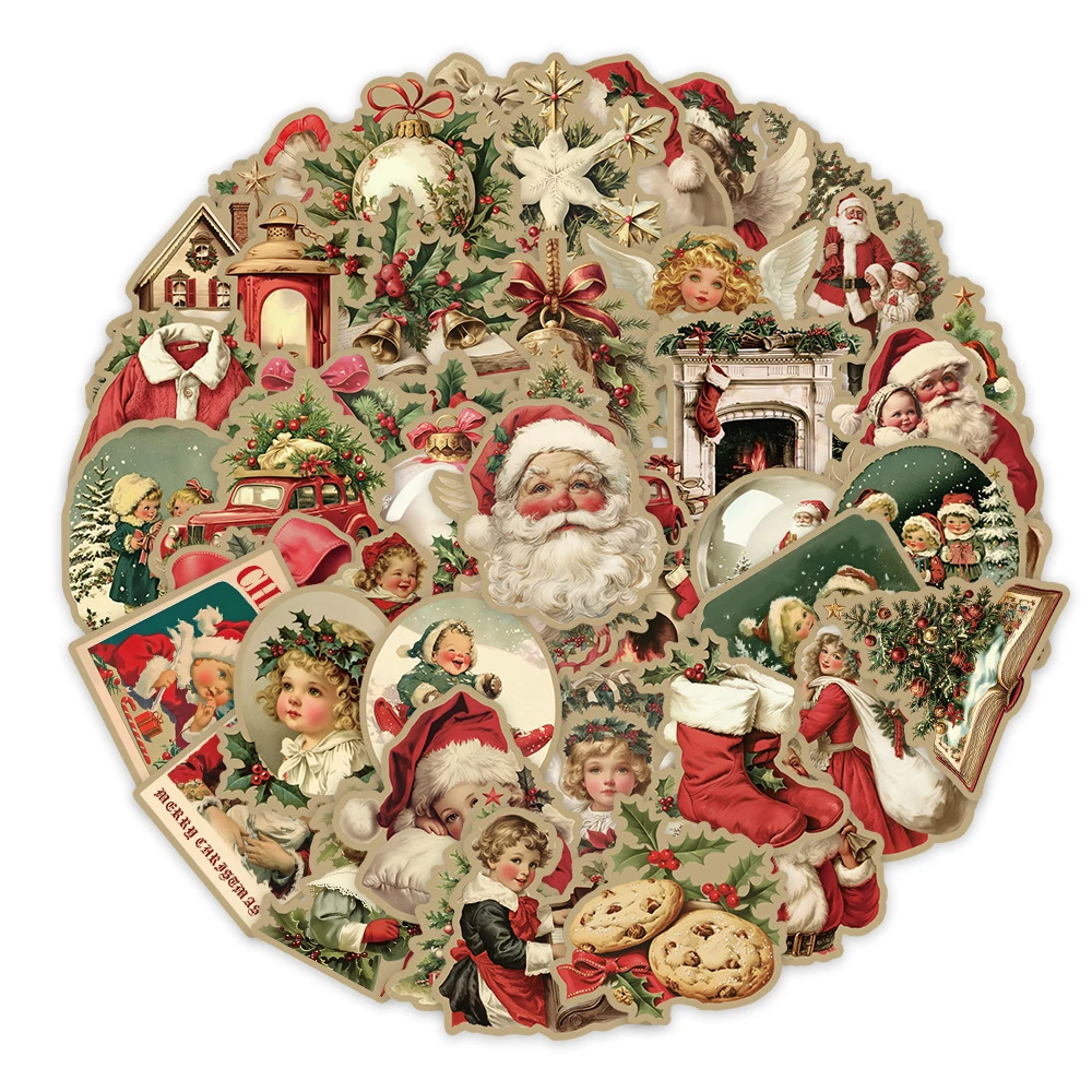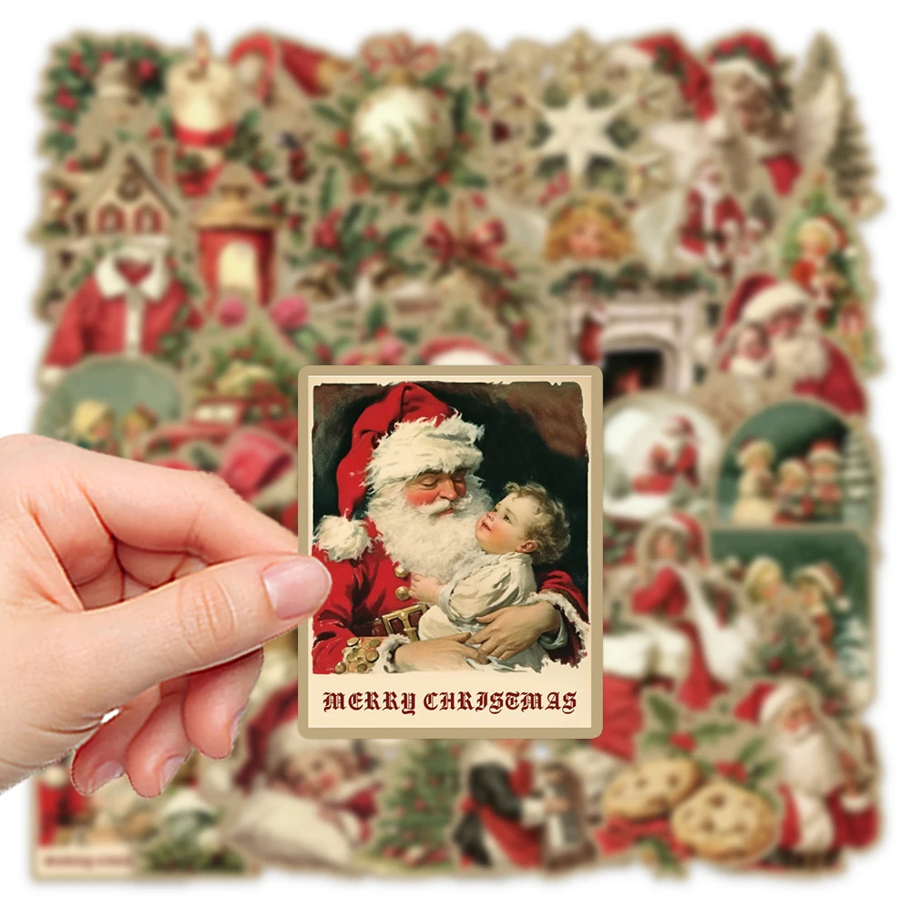 50pcs Retro Christmas Graffiti Stickers Vintage Cartoon Decals Decoration Skateboard Phone Fridge Bike Car Funny Toys Gift