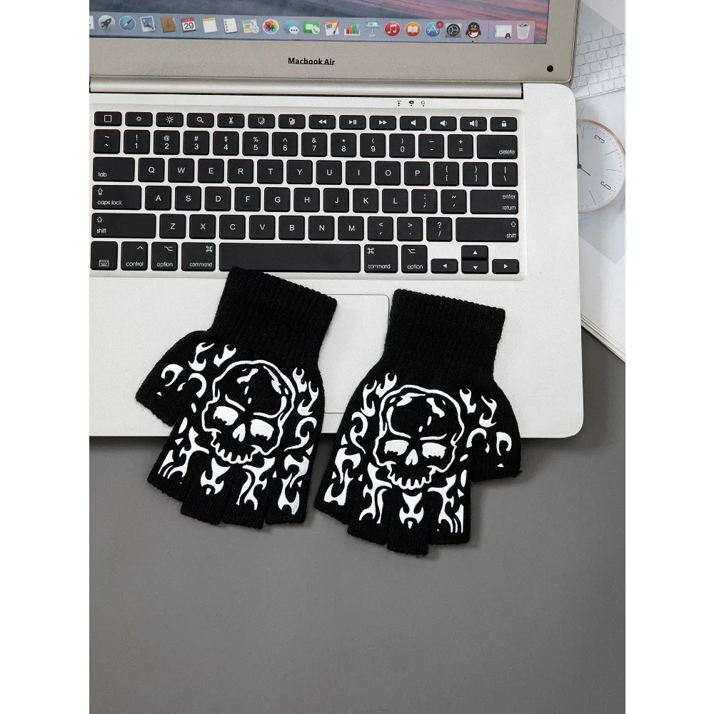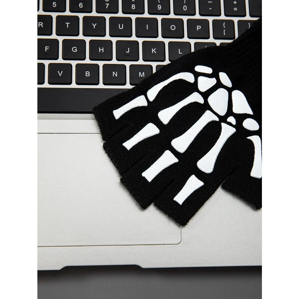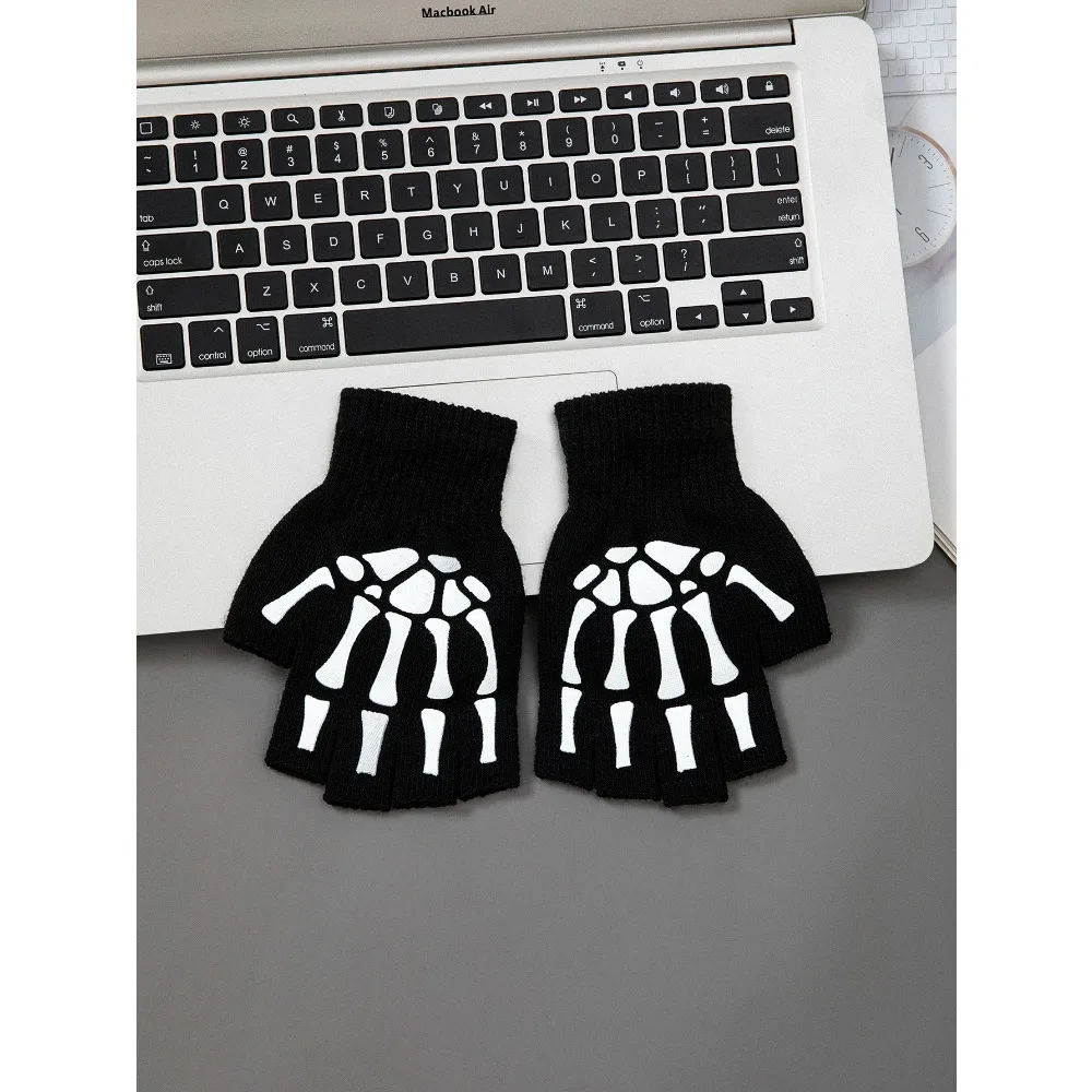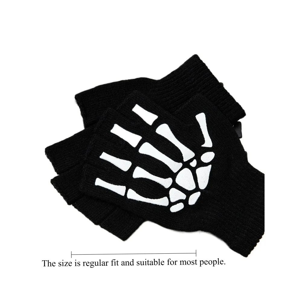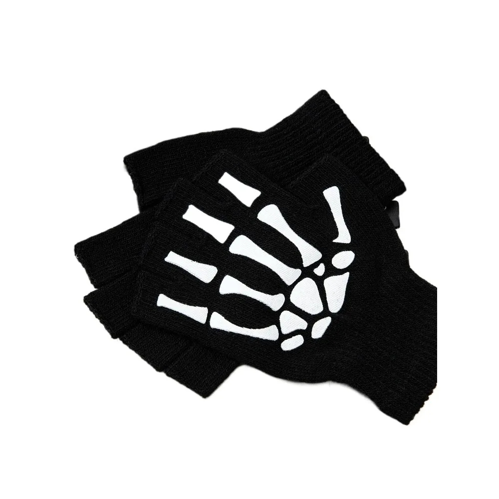 1pcs New Halloween Skeleton Skull Half Finger Punk Gloves Winter Skull Fingerless Black Mitten