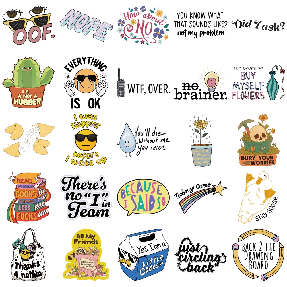 50PCS Creative SarCastic Stickers Decorative Phone Cases, Laptops, Water Cups, Skateboards, DIY Personalized Waterproof Stickers