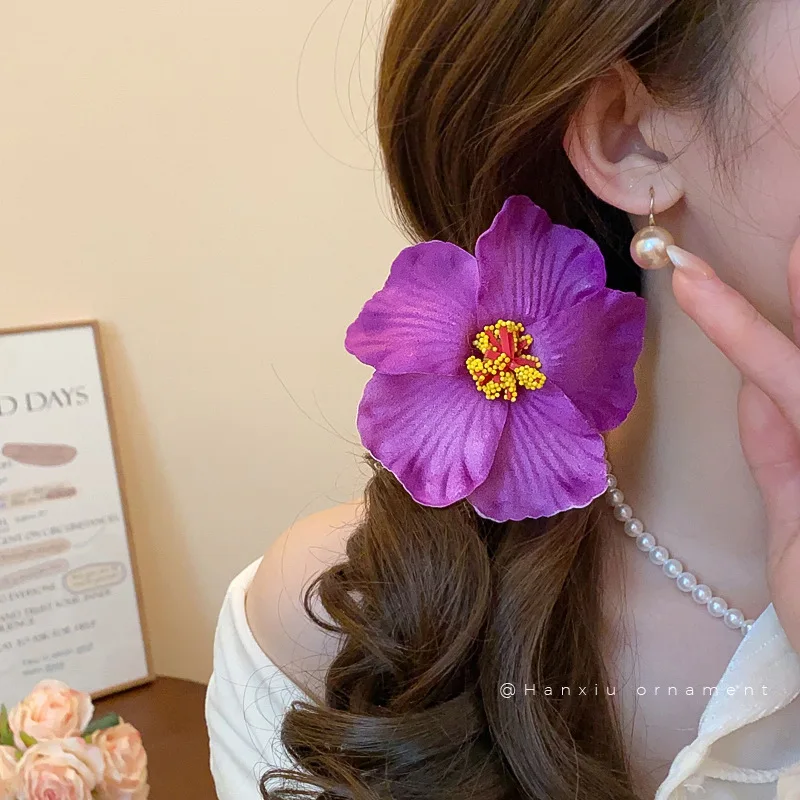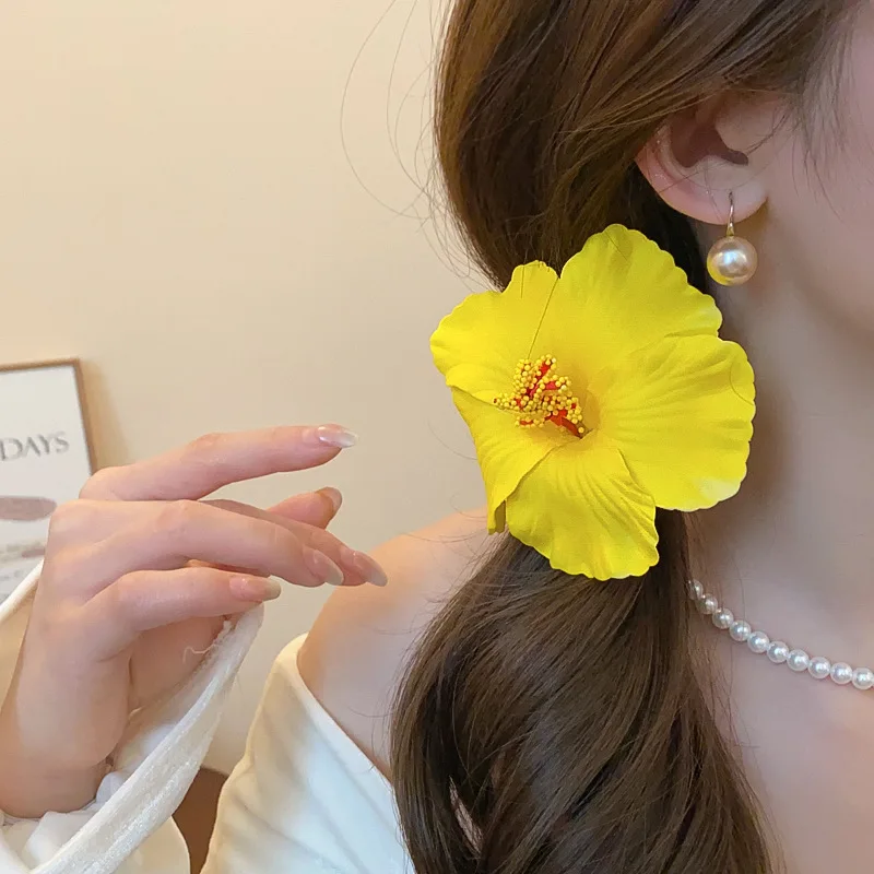 Hawaiian Flower Hair Clips for Women Bohemian Sponge Floral Side Bangs Clip Girls Plumeria Hairpin Romantic Holiday Accessories