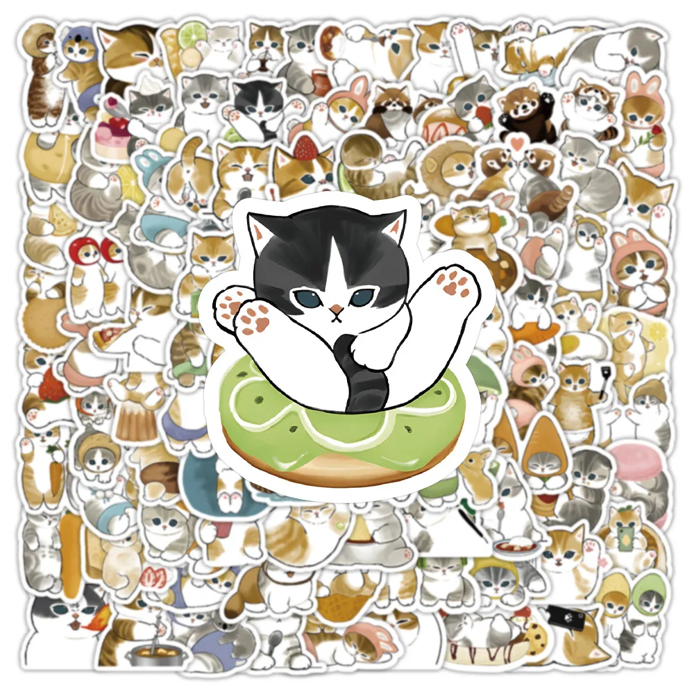 100PCS Kitten Cat Aesthetic Sticker Waterproof PVC Decoration Decal Children's Stationery Scrapbooking Notebooks Luggage Sticker