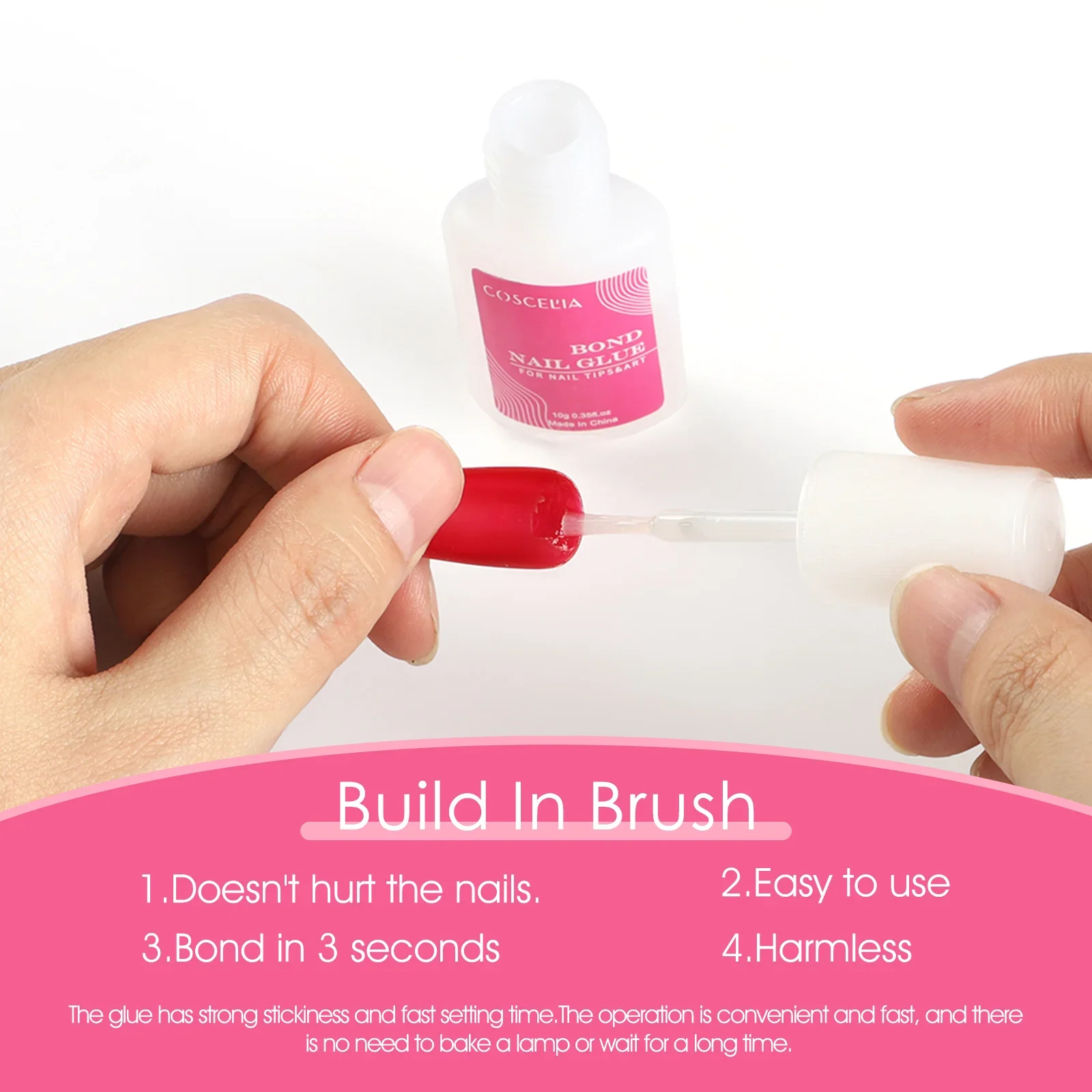COSCELIA 10G Nail Glue False Nail Tips Glue Clear Color Nails Tools