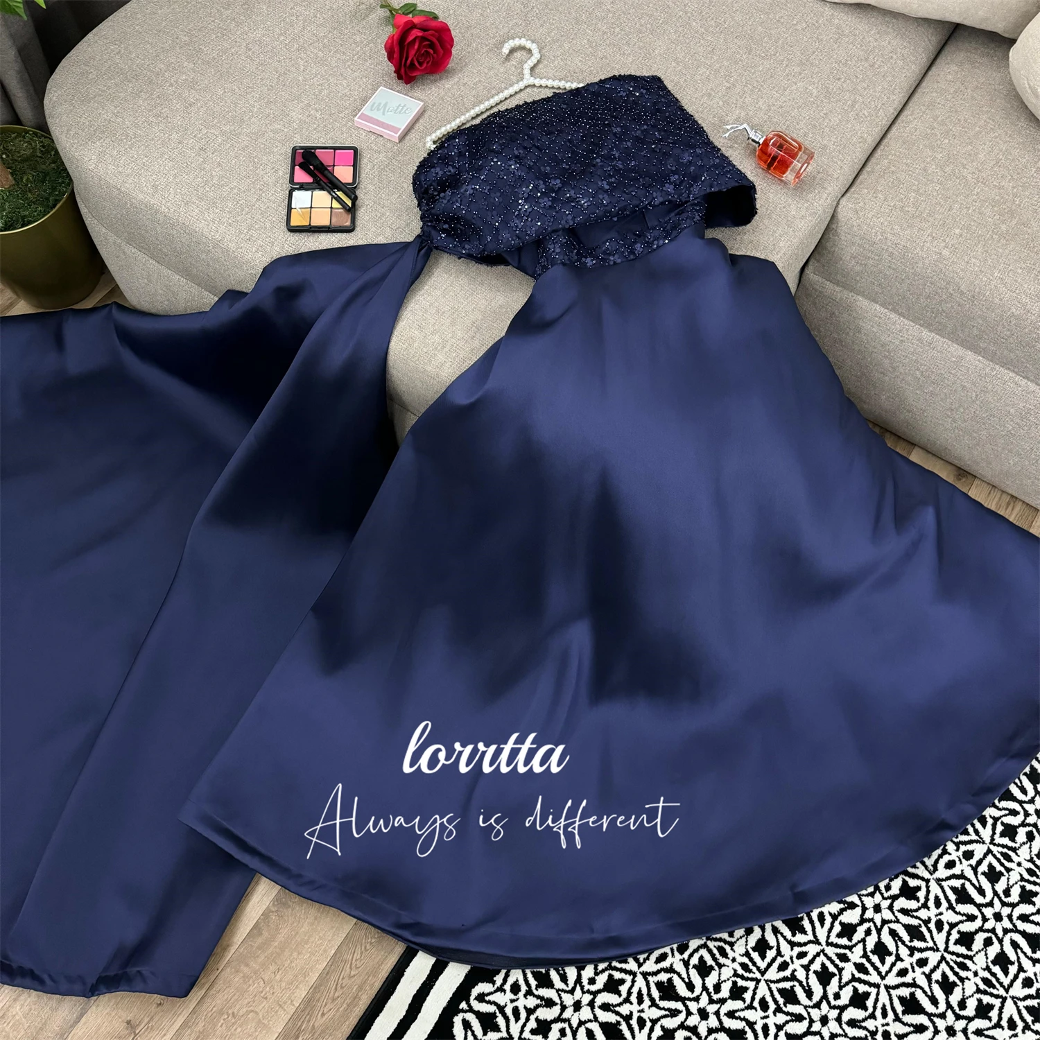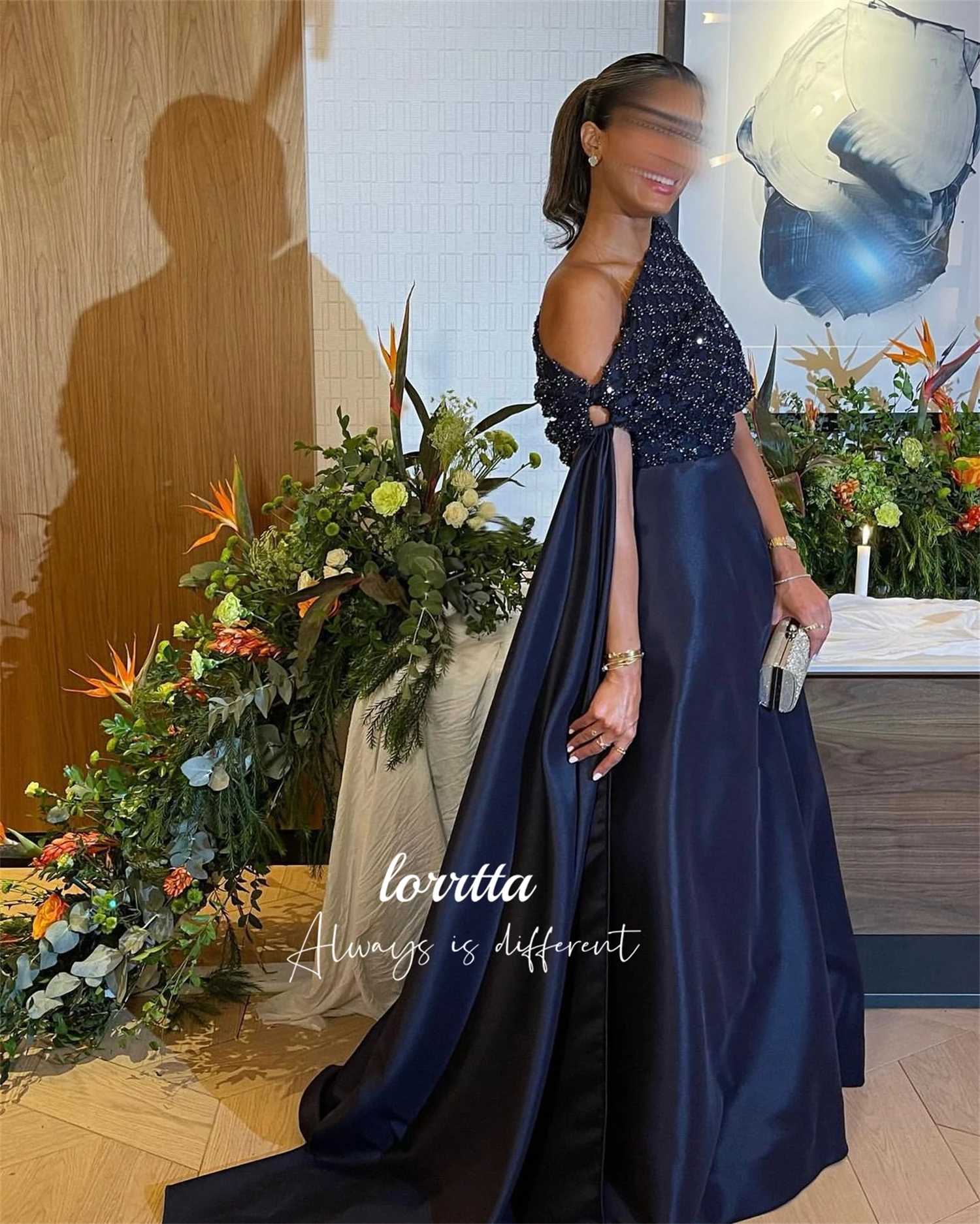Lorrtta Luxurious Line A Evening Dress Dark Blue Bead Embroidery Fabric Special Occasion Dresses Robes De Cocktail Customized