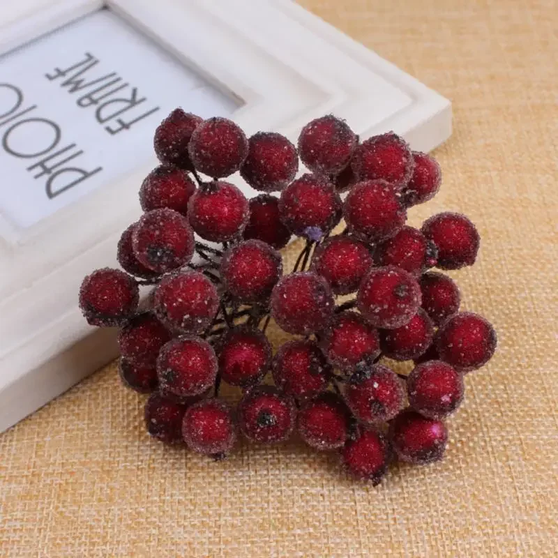 40pcs Mini Christmas Frosted Artificial Berry Vivid Red Holly Berries Wedding Party Decoration Artificial Flowers Home Decor