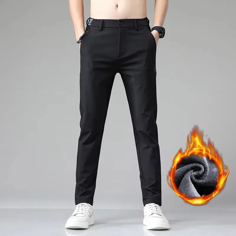 Winter Fleece Golf Casual Pants Men Business Slim Stretch Jogger Thick Trousers Korean Classic Elastic Waist Velvet Male Pants
