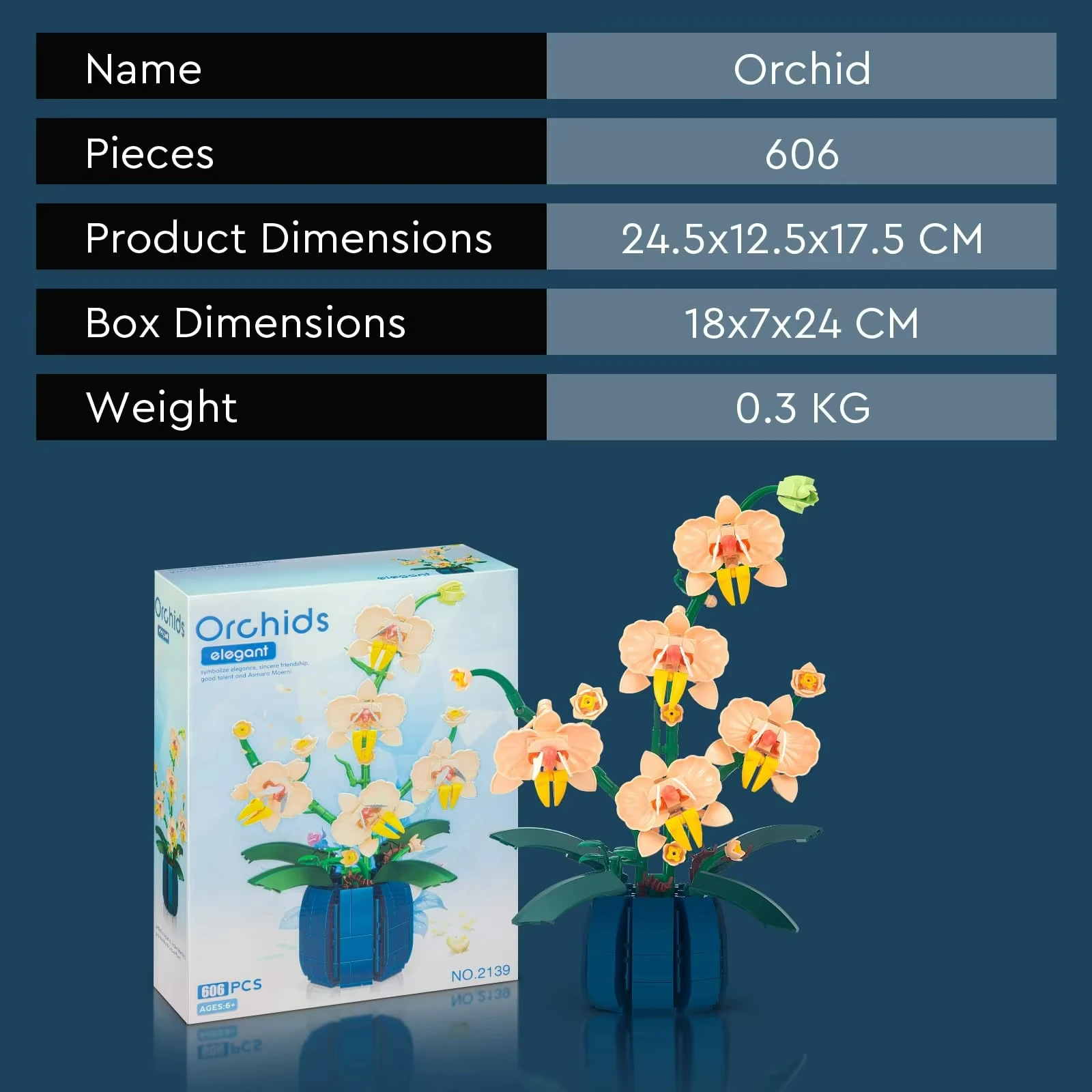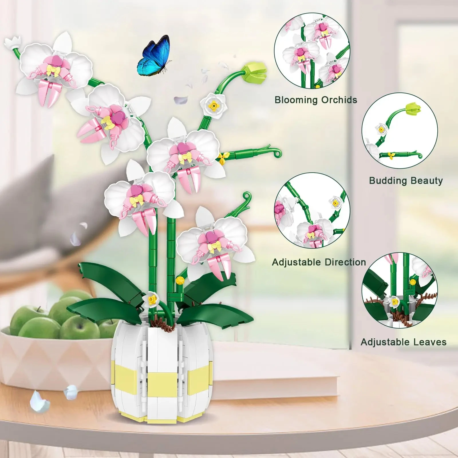 Orchid Flower Building Kit, Plant Botanical Bonsai Collection, Decor Home Office, Blocks Toy for s Kids Age 6+, 616PCS