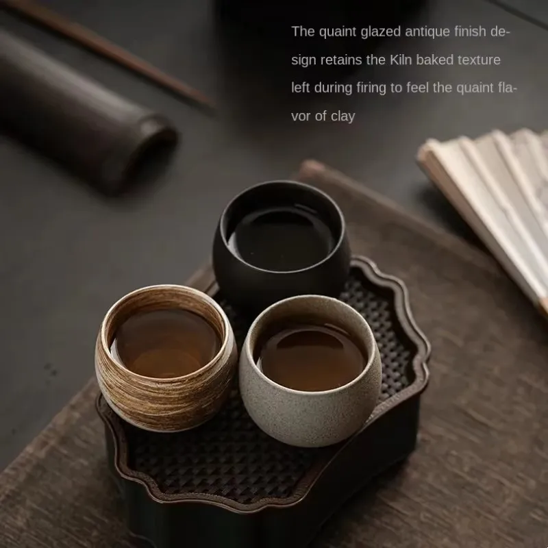 1pc Japanese Style Handmade Stoneware Tea Cup Kung Fu Tea Set Tea Cup Small Single Cup Ancient Style Quiet Road Cup Bowl Teacup