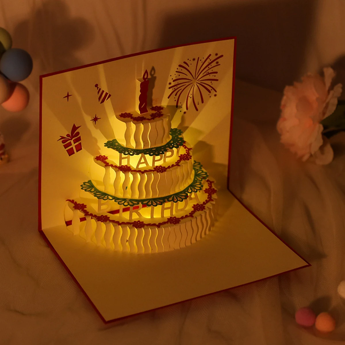 Cake Creative Greeting Card Happy Birthday Party Gift Message Cards Party Gifts 3D Happy Birthday Greeting Card With Music
