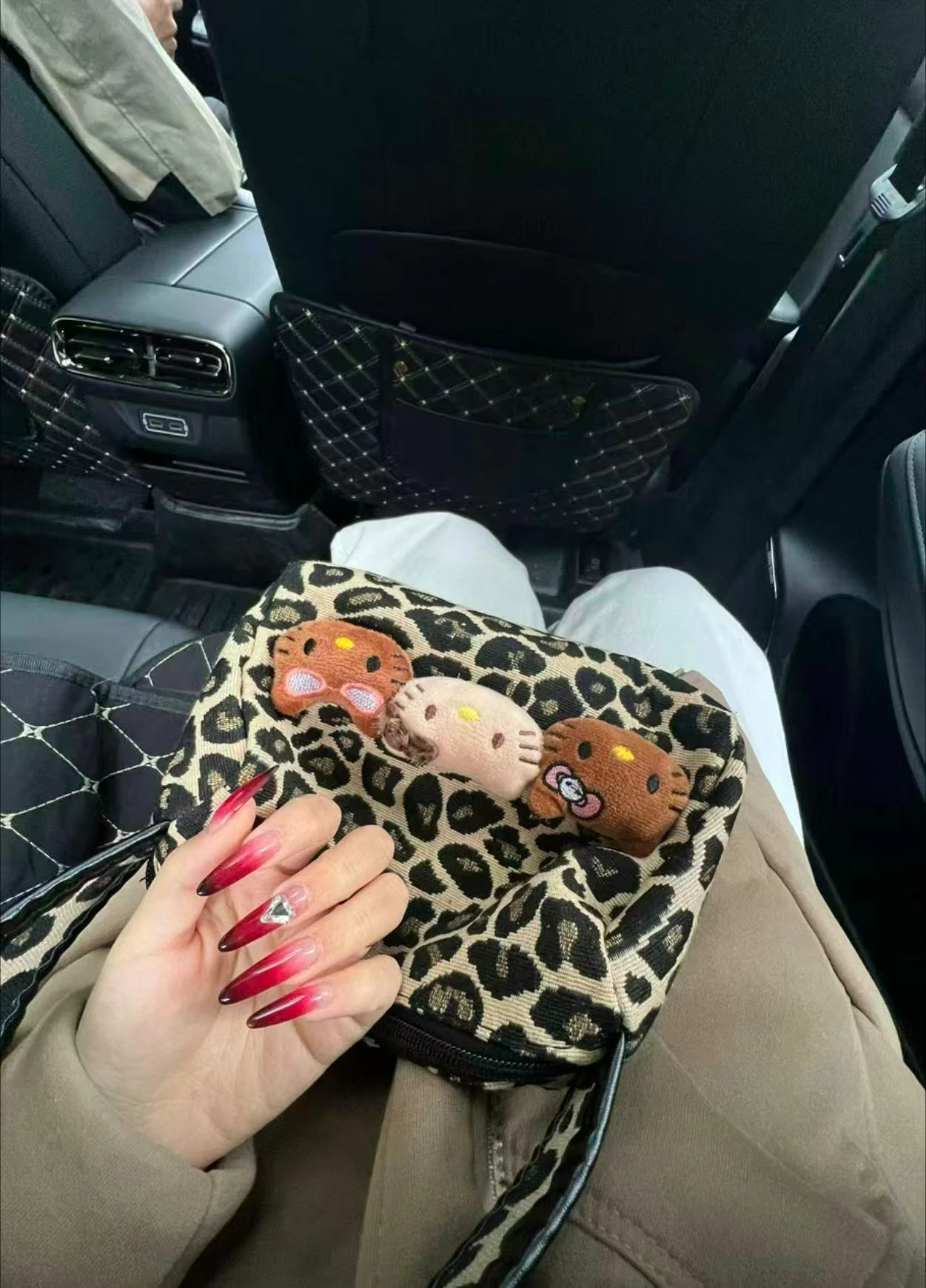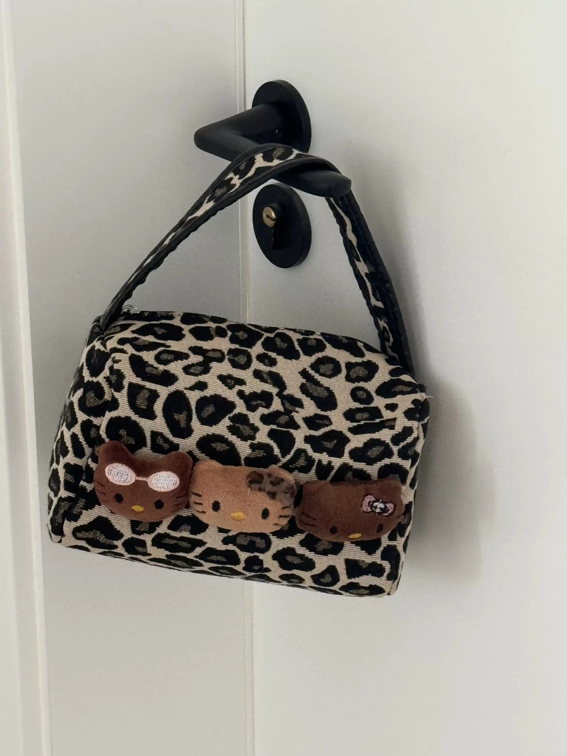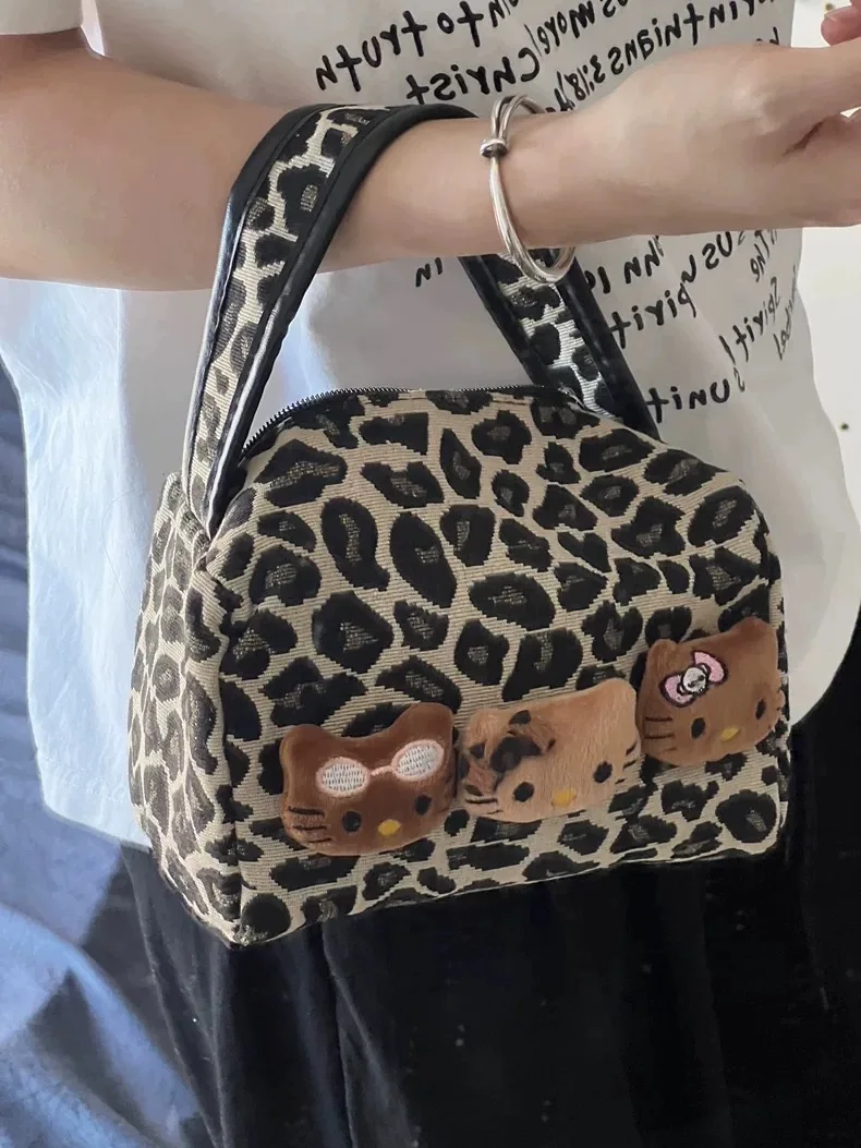 Hello Kitty Leopard Makeup Bag Girls Portable Going Out Small Handbag Cute Kitty Large-capacity Travel Storage Bag Girls Gift