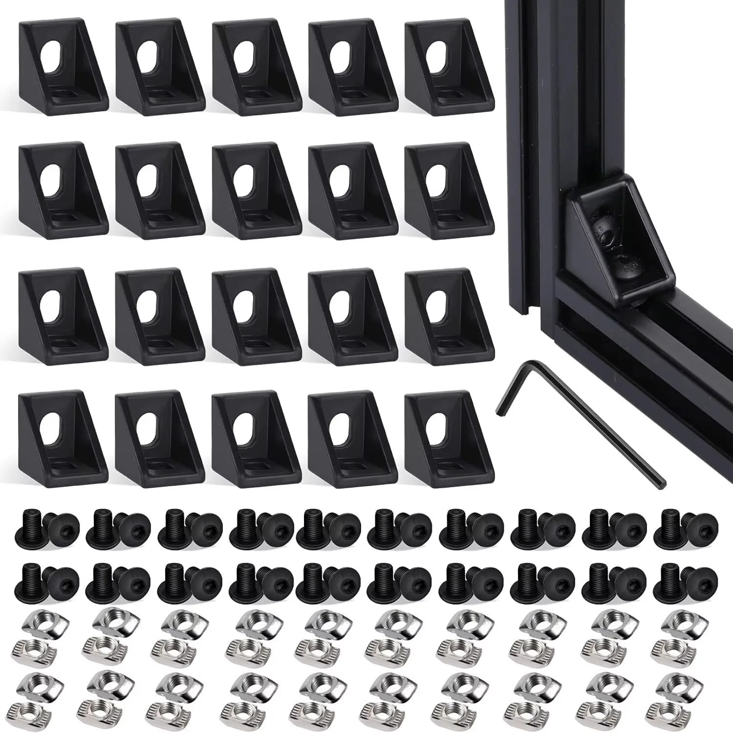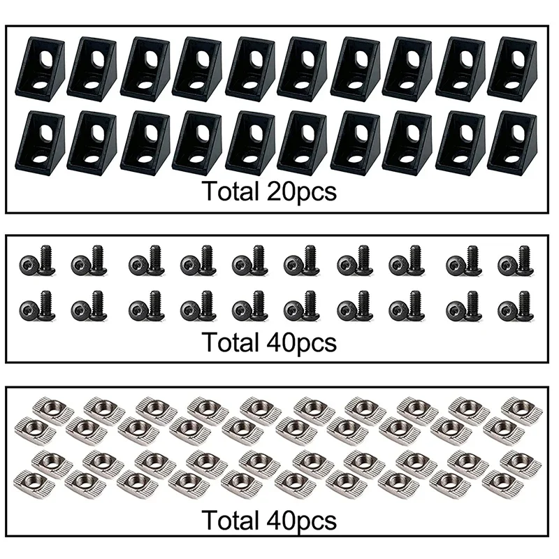 20Sets Corner Bracket, 40Pcs Drop in T Nuts and Hex Screw Bolt for Slot 6mm 2020 Series Aluminum Extrusion Profile Accessories