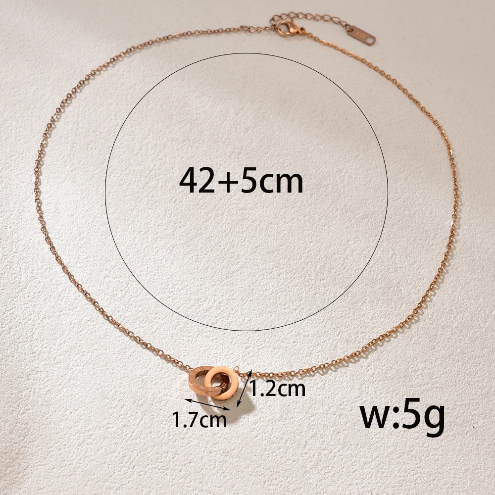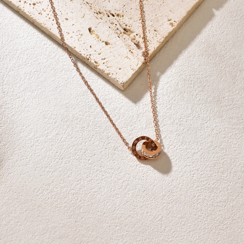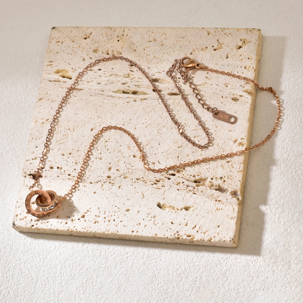 L91 new stainless steel rose gold square diamond Roman numeral double-buckle short necklace fashionable gift