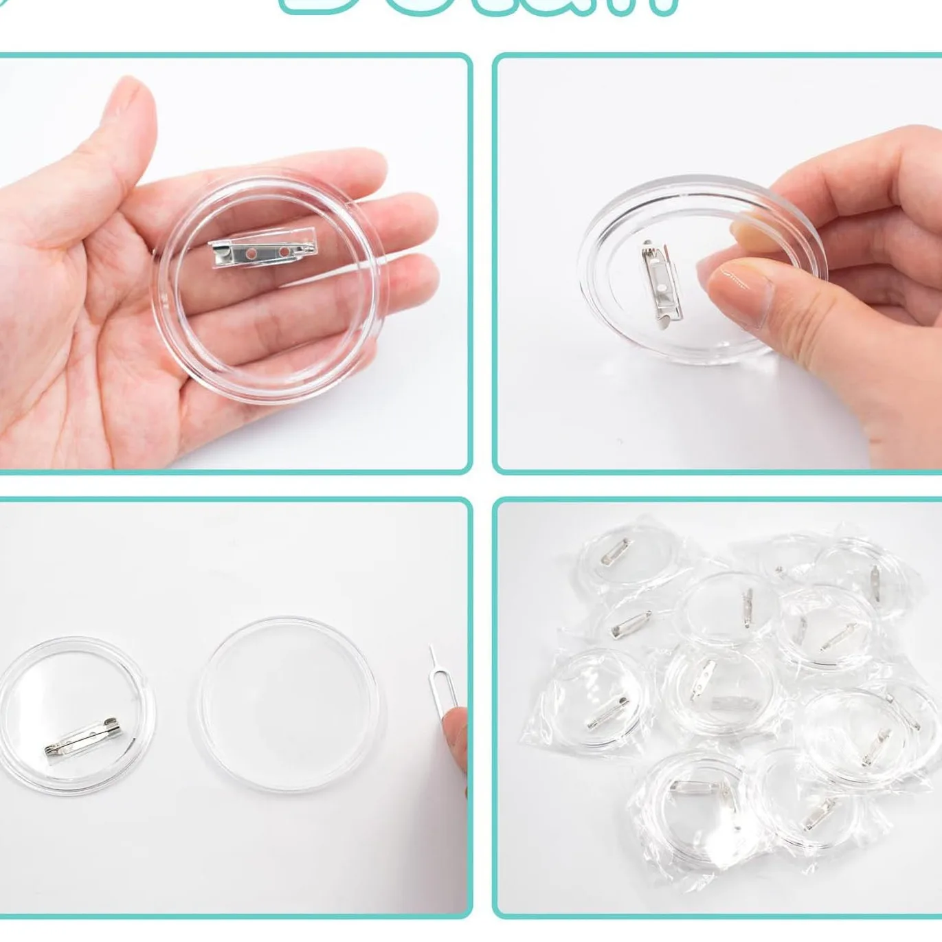 10PCS Clear Acrylic Badge Blanks - DIY Button Pins for Custom Photos, Sewing & Clothing Projects
