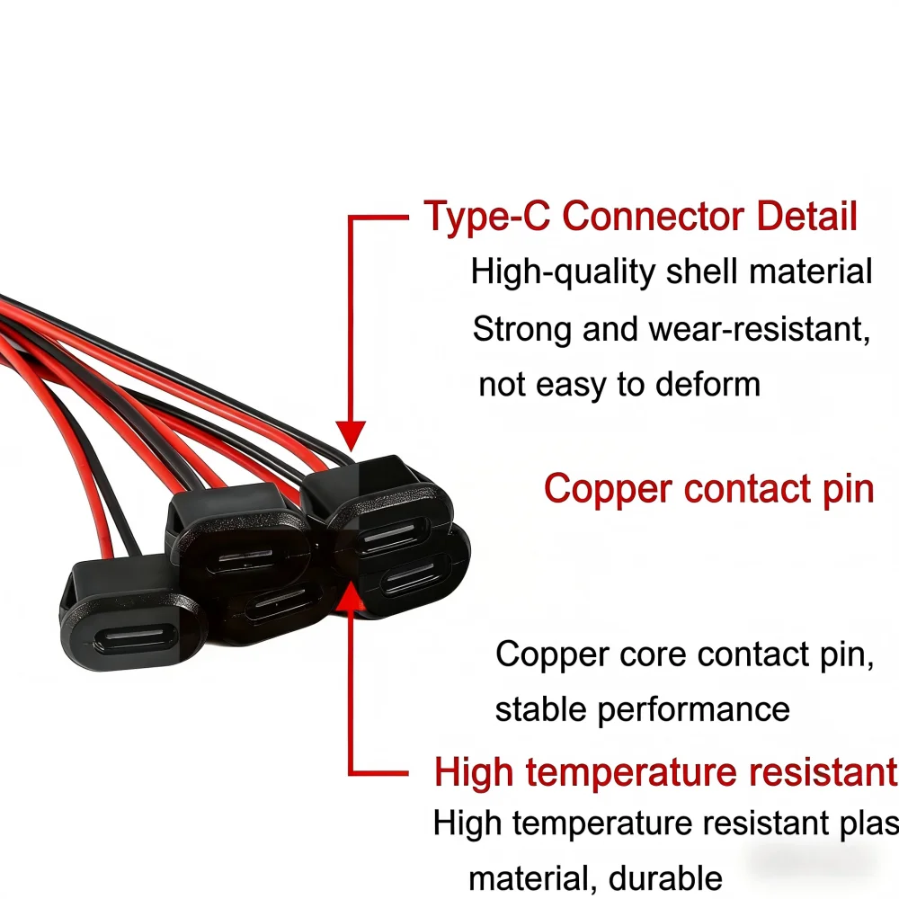 Type-C 2Pin USB Connector Black 10PCS Type-C Female Waterproof with Female Socket Fast Charging Jack Charging Port USB-C Plug