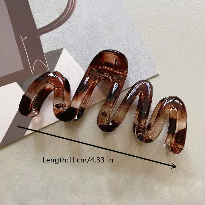 Women's Wavy High Glossy Amber Brown 11cm/4.33in Large Lightweight Plastic Hair Clip Elegant Minimalistic Hair Accessories