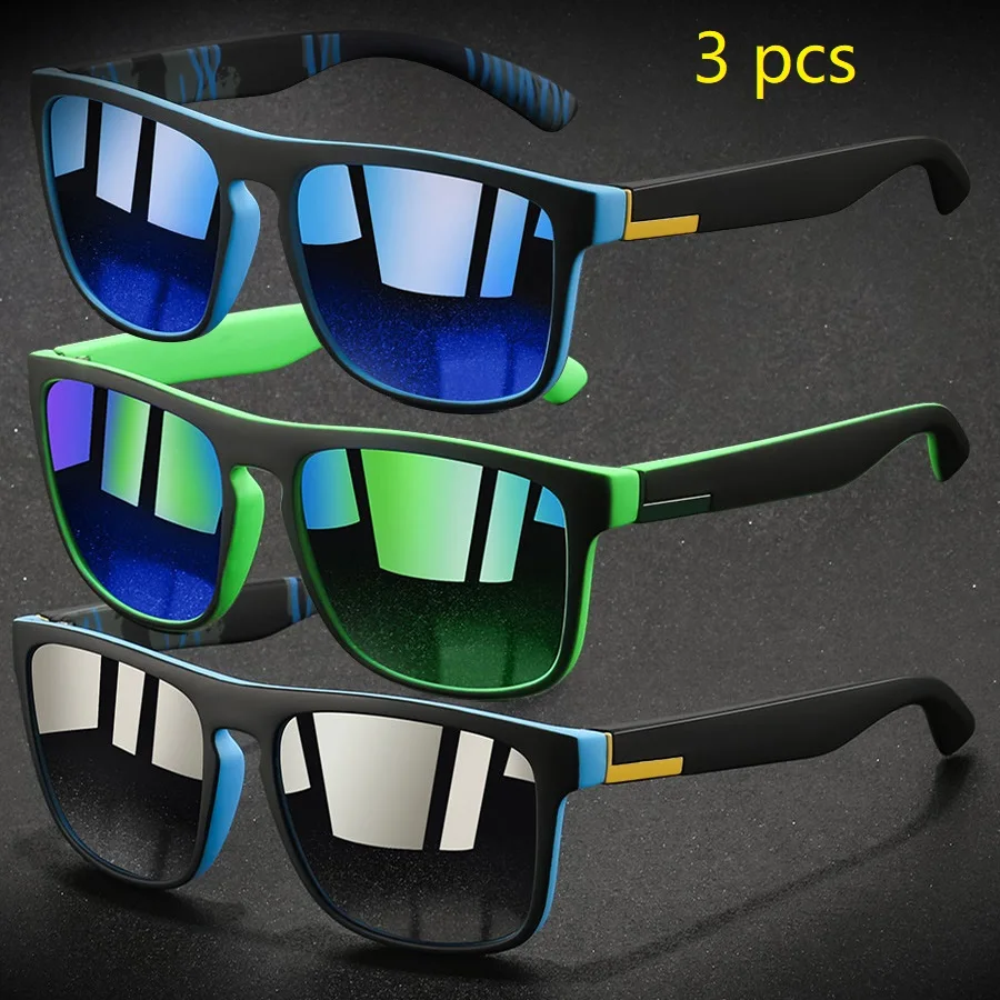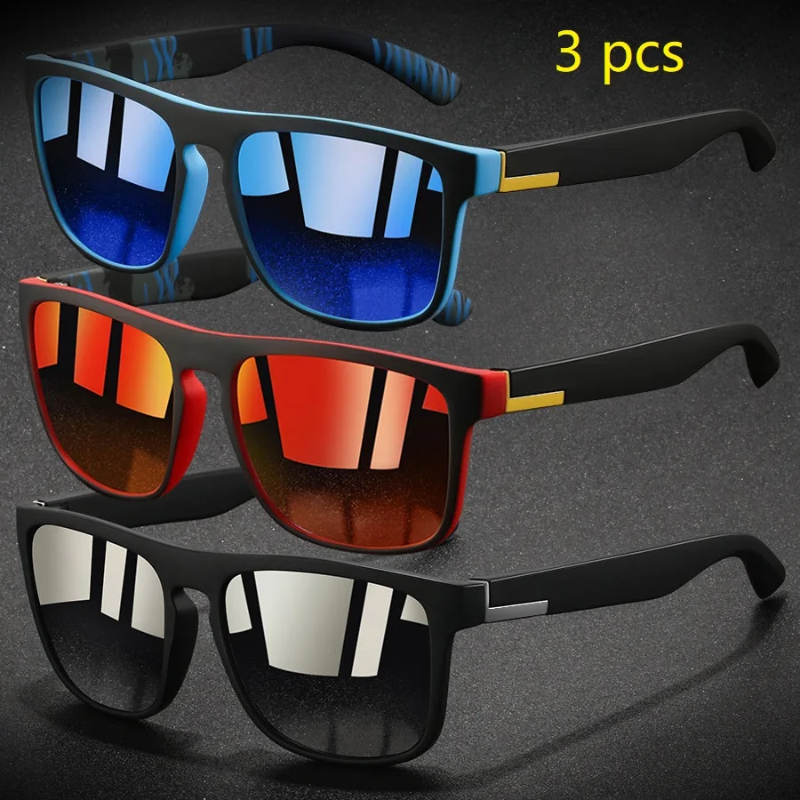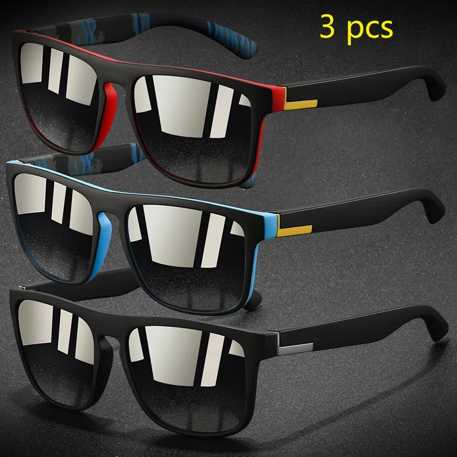 3 Pieces Fashion Vintage Square Sports Sunglasses Men Women Fishing Driving Man Brand Designer Sun Glasses Retro Eyewear UV400