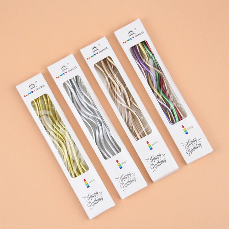6pcs/lot Curve Birthday Candles Golden Thread Slender Rod Candle for Party Cake Decoration Pencil Candles