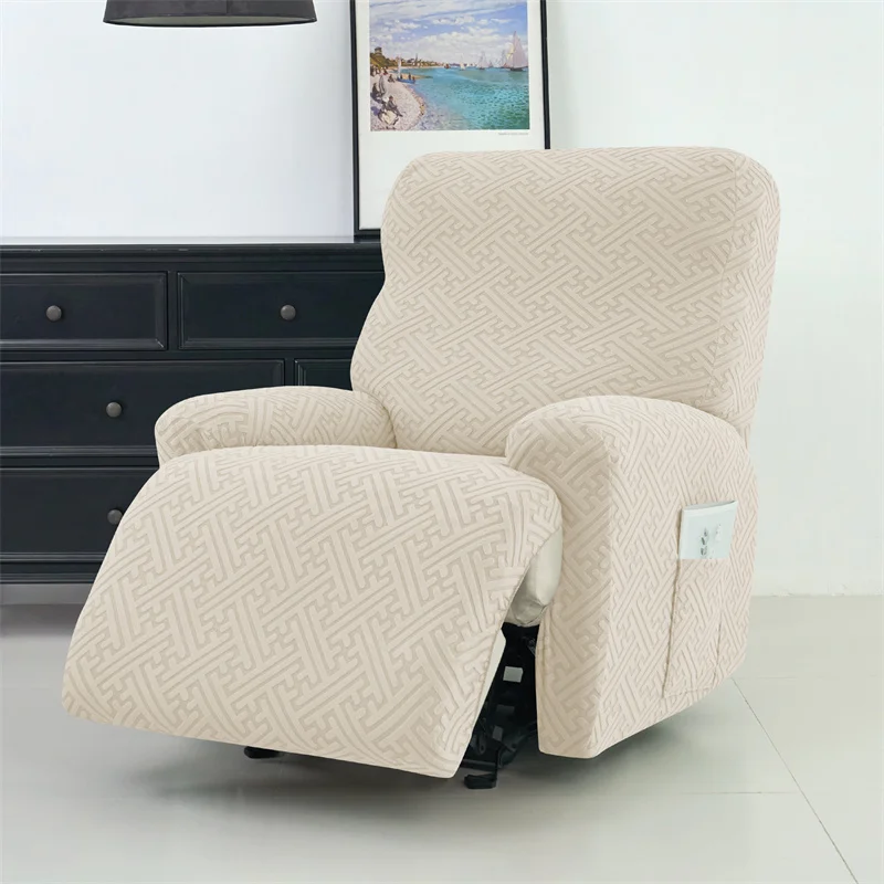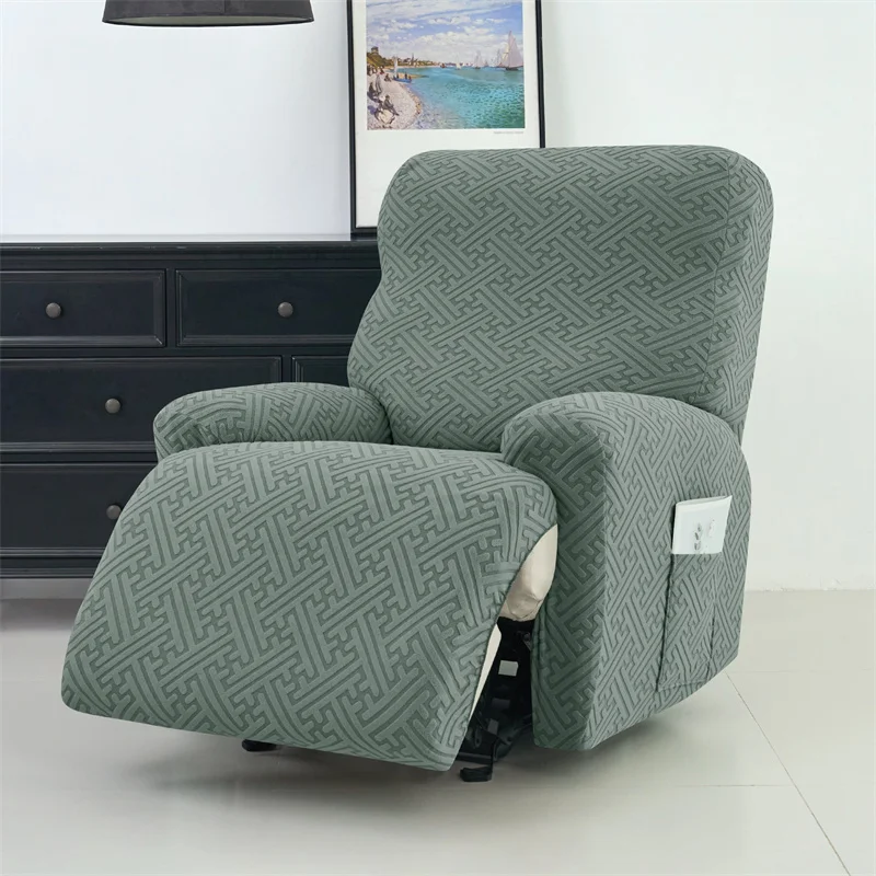 4Pcs/set Jacquard Recliner Sofa Cover Stretch Armchair Slipcovers Solid Color Non-Slip Couch Slipcovers for Home Office Decor