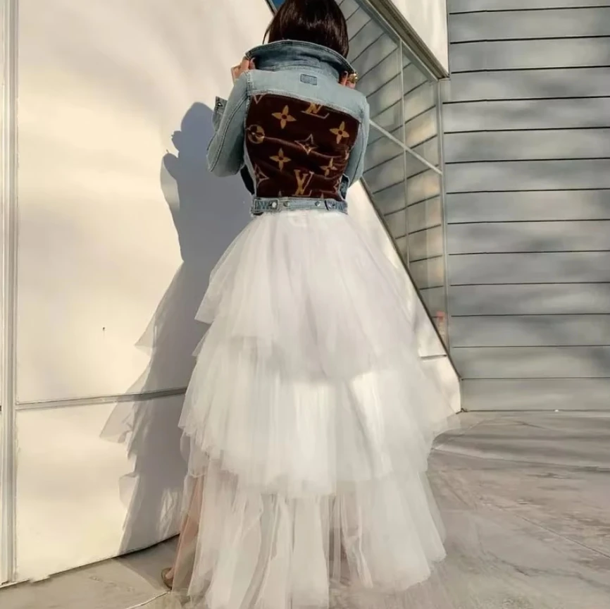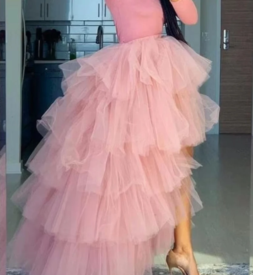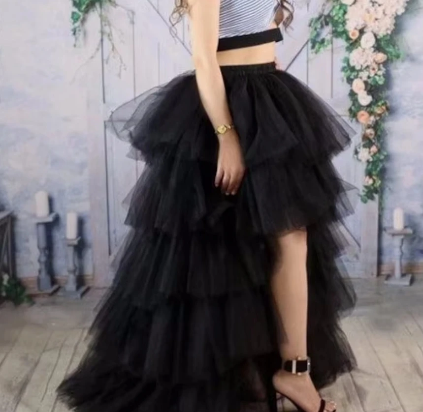 Women Tulle Petticoat Tiered High Low Elastic Waist Tutu Skirts Puffy Long Soft Net Gown Underskirt Prom Maxi Skirt Free Size