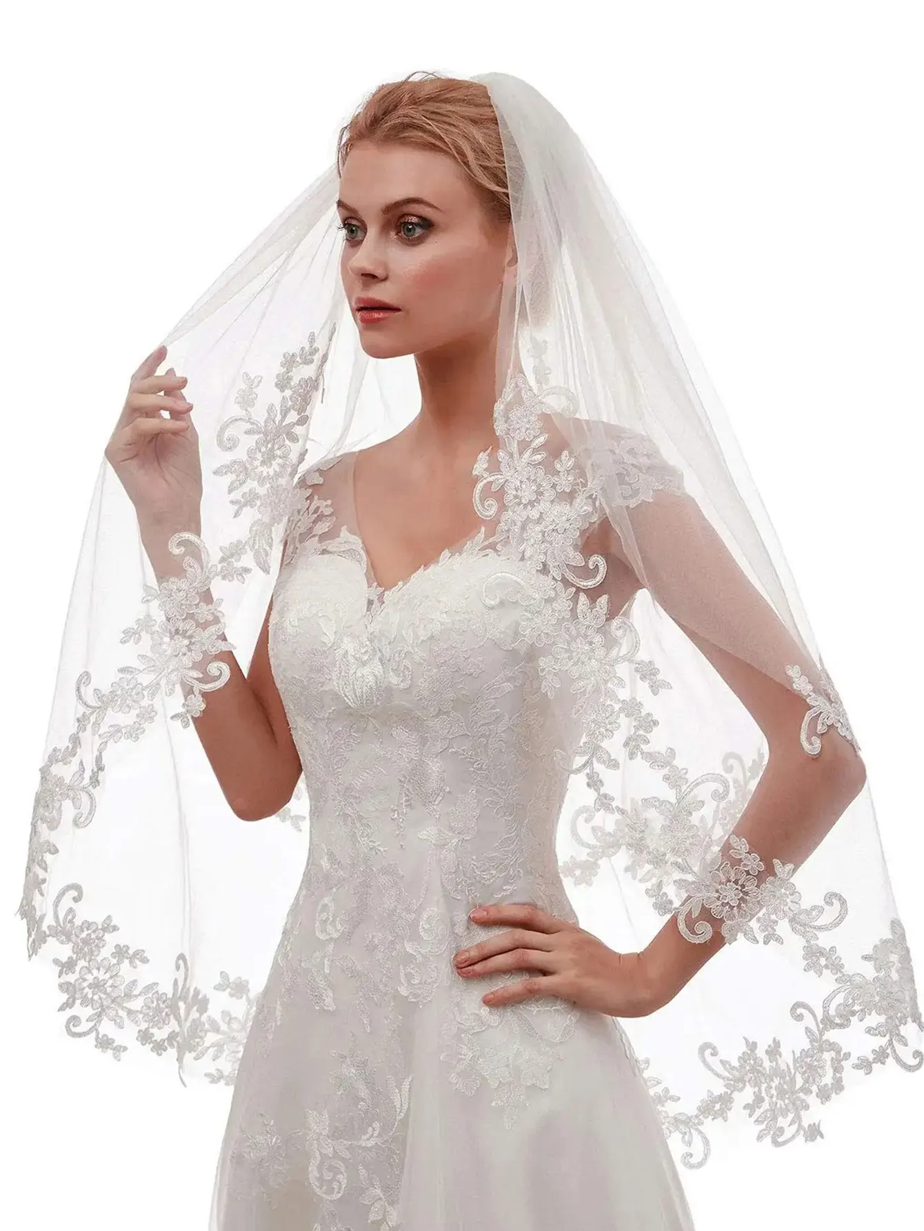 Women's Short 2 Tier 60/80 cm Lace Wedding Bridal Veil With Comb Two Layers Bride Veils