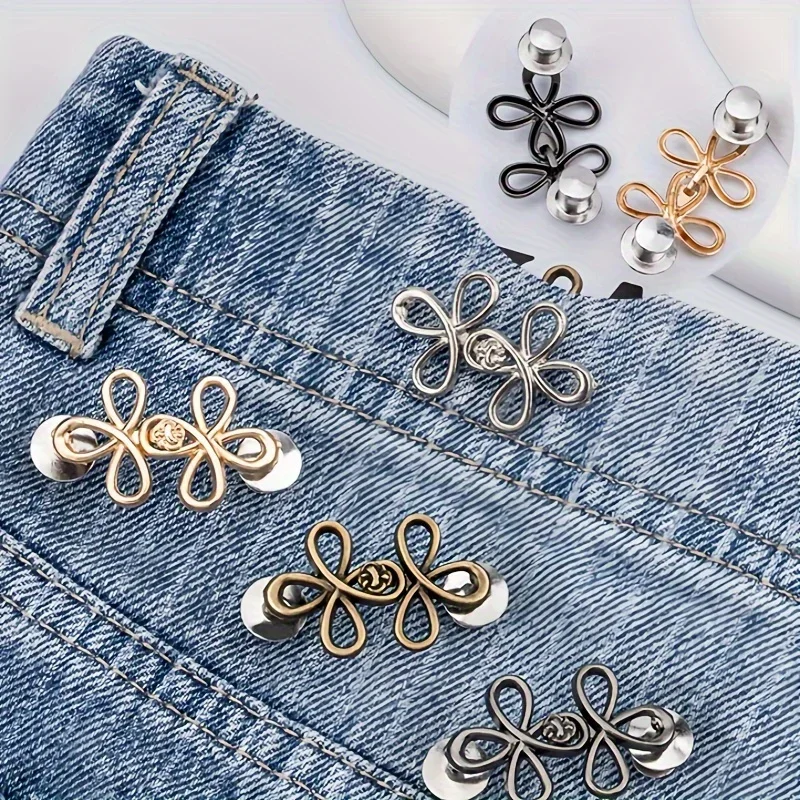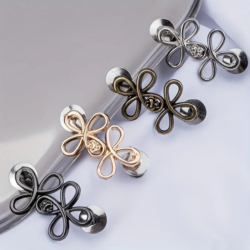 2PCS Lucky Four-Leaf Clover Alloy Waist Clips - No-Sew Adjustable Detachable Buckle for Pants/Skirts, Fashion Jewelry
