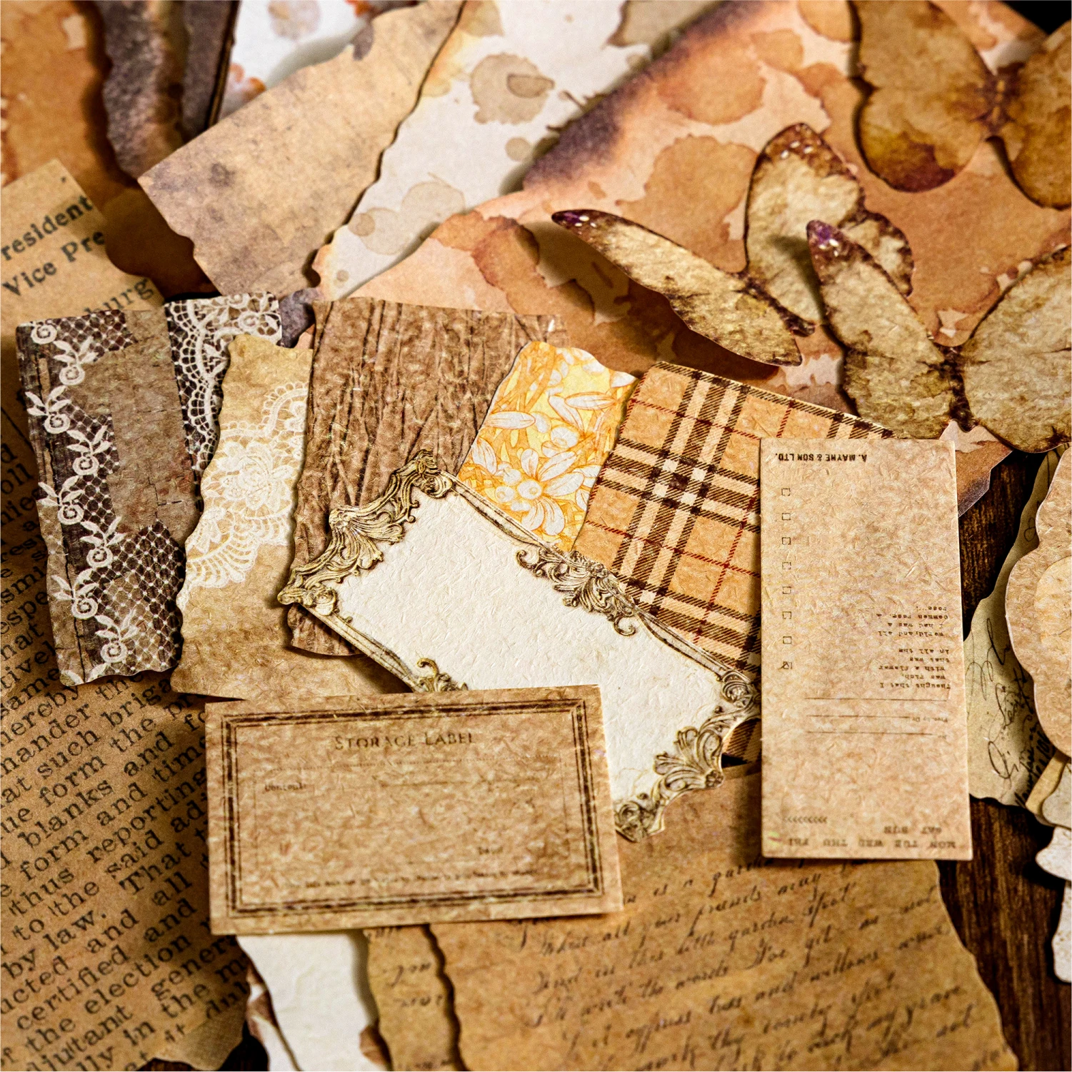 JIANQI 100pcs Vintage Decor Scrapbooking Materials Paper Combo Kit DIY Junk Journal Collage Photo Album Retro Background paper