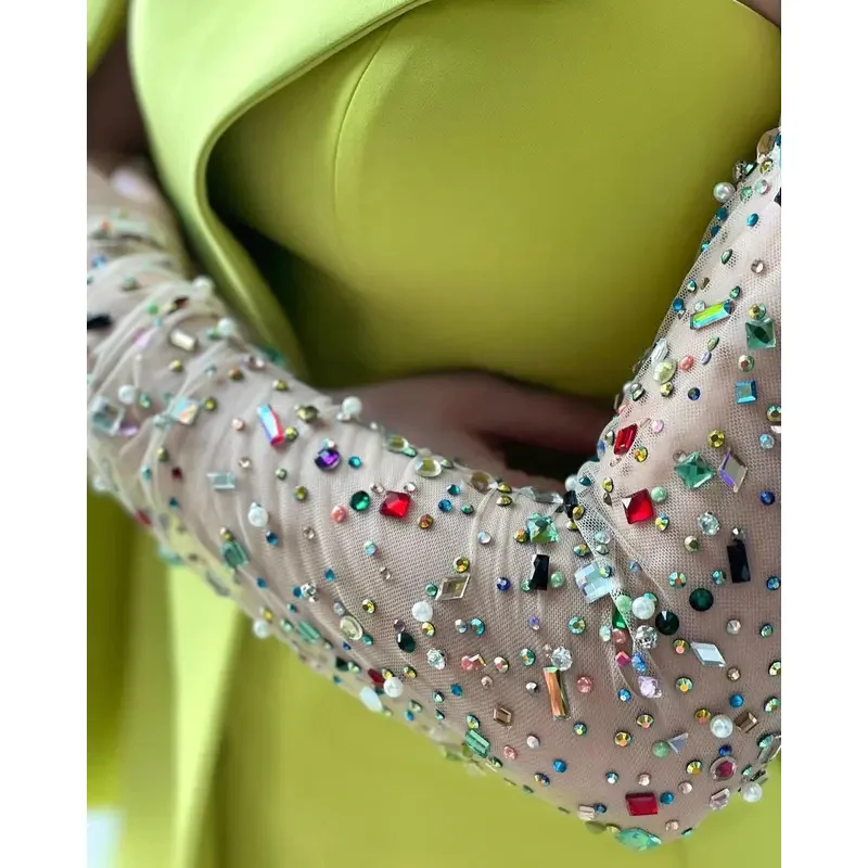 aliexpress , ali , shop , ali shop , online , store , online shop , online store , buy , sell , Indie Yellow Green Modern Boat Neck Strapless Evening Dress Floor Length Satin Crystal Saudi Arabia Prom Dresses Customized 2025