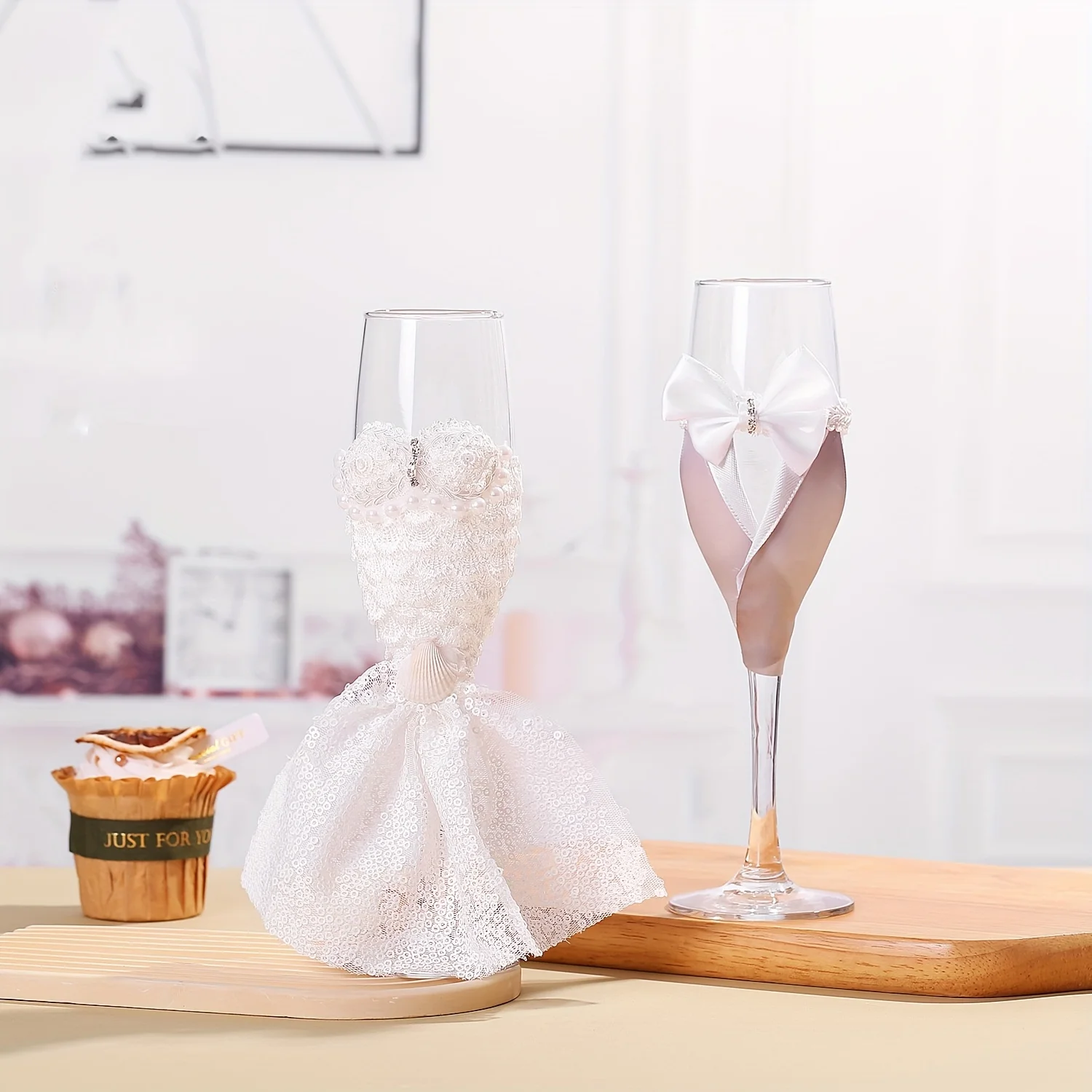 Delicate wedding wine glasses Wedding dress style Champagne glasses Romantic glasses for the bride and groom's banquet