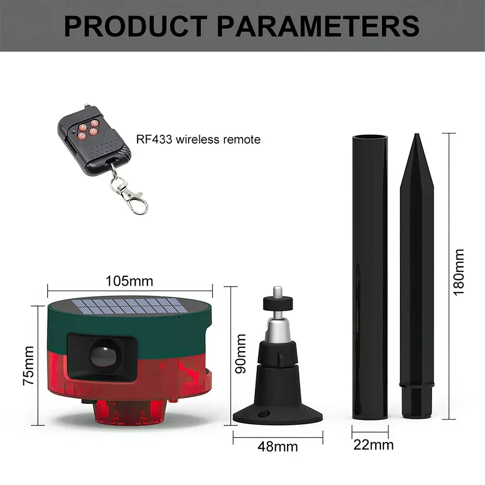Solar Infrared Motion Sensor Alarm Detector Waterproof Outdoor Animal Repeller Security Alarm 129dB Dog Barking Gunshots Sound