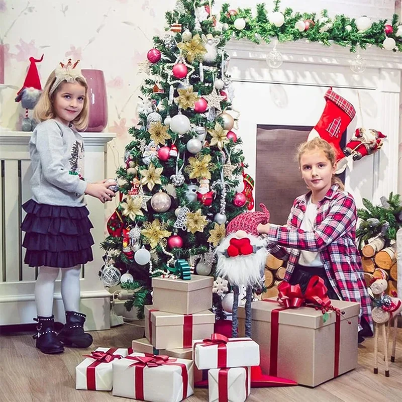 Gold Red Christmas Decoration Glitter Artifical Flowers Christmas Tree Decorations for Home Decor Xmas Ornaments New Year Decor