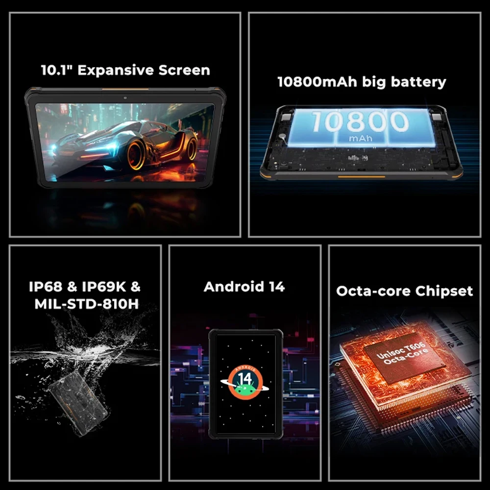 HOTWAV R8 4G Rugged Tablets Android 14 10800mAh Battery Pad 10.1 Inch Screen 4GB+128GB 5MP+13MP Camera Tablet PC Global Version