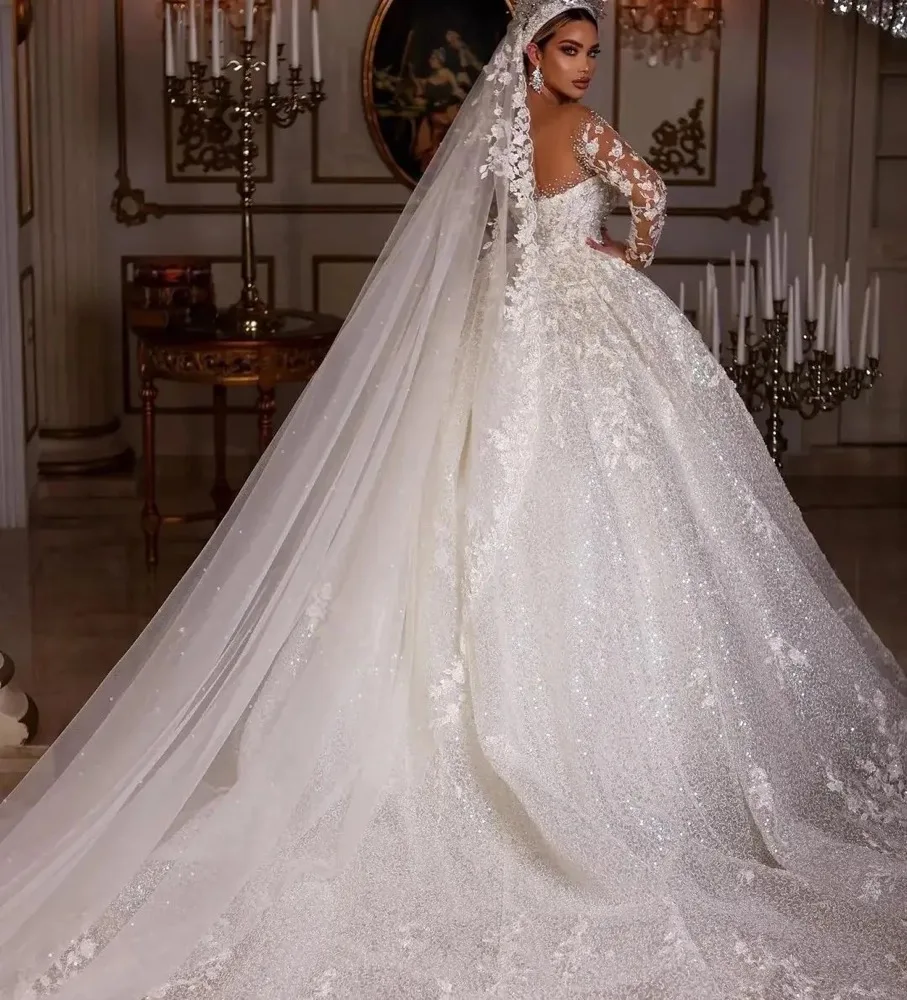 aliexpress , ali , shop , ali shop , online , store , online shop , online store , buy , sell , Luxury Princess Wedding Dresses Vintage Bridal Gown Beading Shinny Tulle Long Sleeves Robe Elegant Pretty Dress Customized 2025