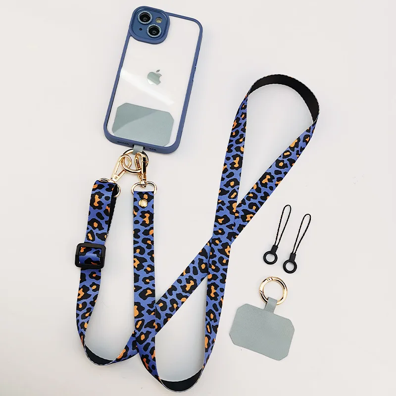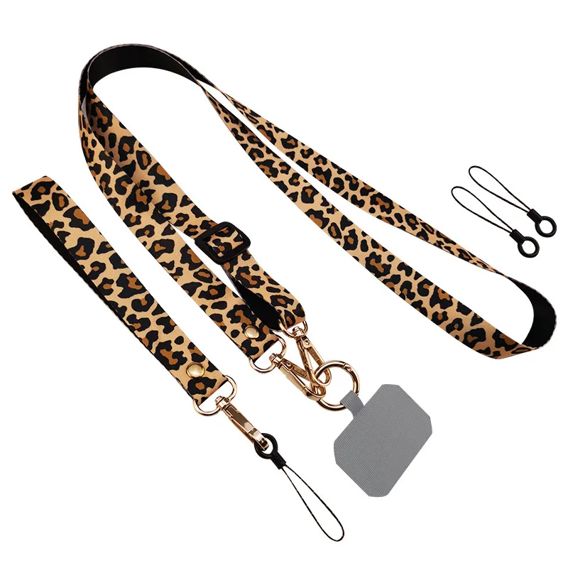 Universal Adjustable Long Phone Lanyard With Leopard Print Short Wrist Strap Smple and Stylish Diagonally Apanning Prevent Loss