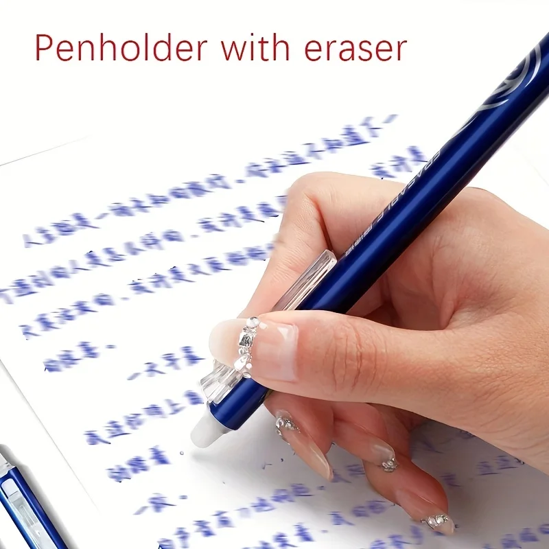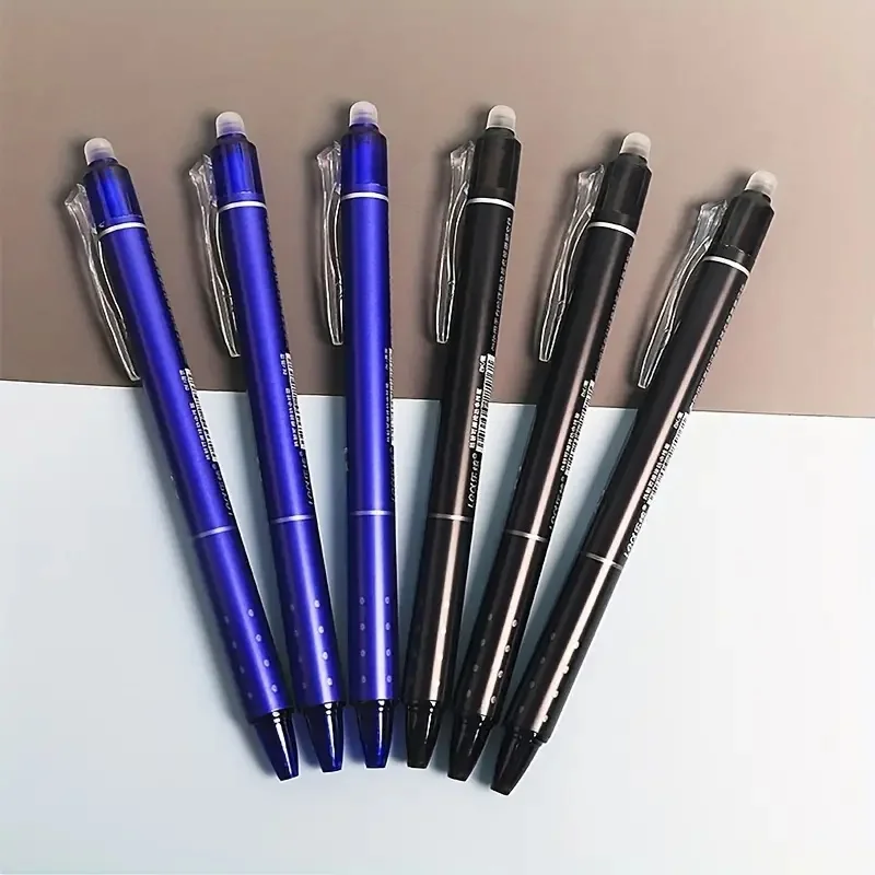 12pcs Press Type Erasable Gel Pens 0.5mm Black/Blue Ink Bullet Washable Handle Magic Refills Rod Super Capacity Ink Writing