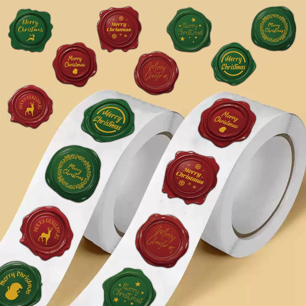 500PCS Christmas Seal Roll Stickers Exquisite Christmas Elements Envelope Label Stickers Decorative Blessing Creative Seal