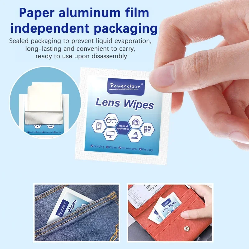 100pcs Glasses Cleaning Lens Wipes Sunglasses Mobile Phone Screen Wipes Pre-Moistened Individually Wrapped No Scratches Stripes