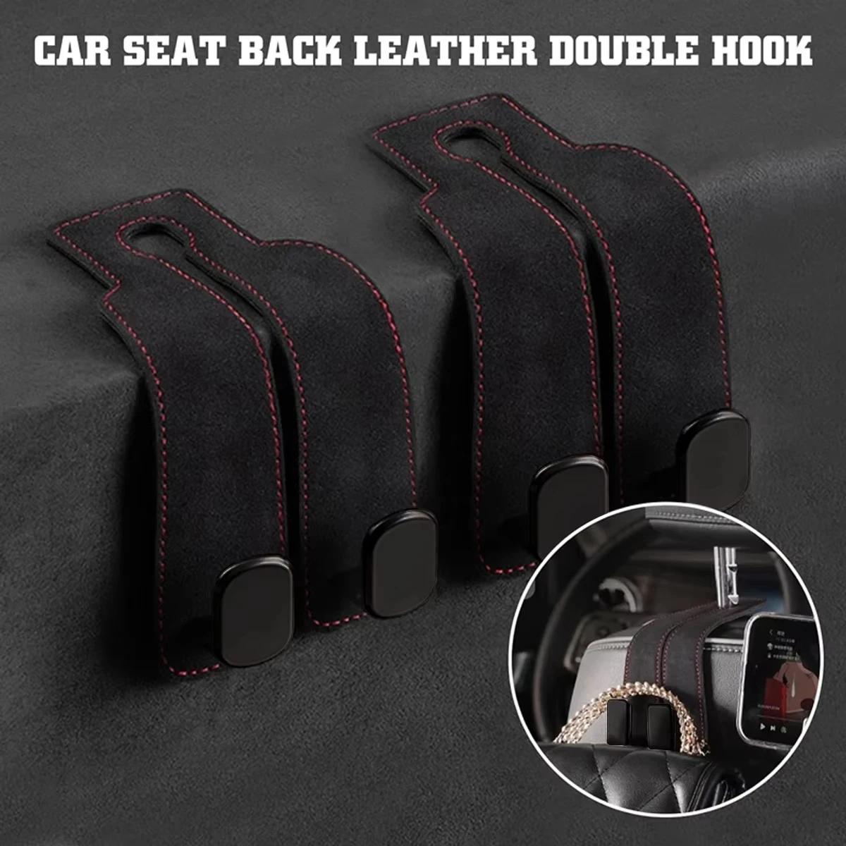 2 in 1 Quality Car Headrest Hook Premium Suede Rear Seat Hanging Dual Hook Large Load-Bearing Alloy/ABS Hook Hanger Universal