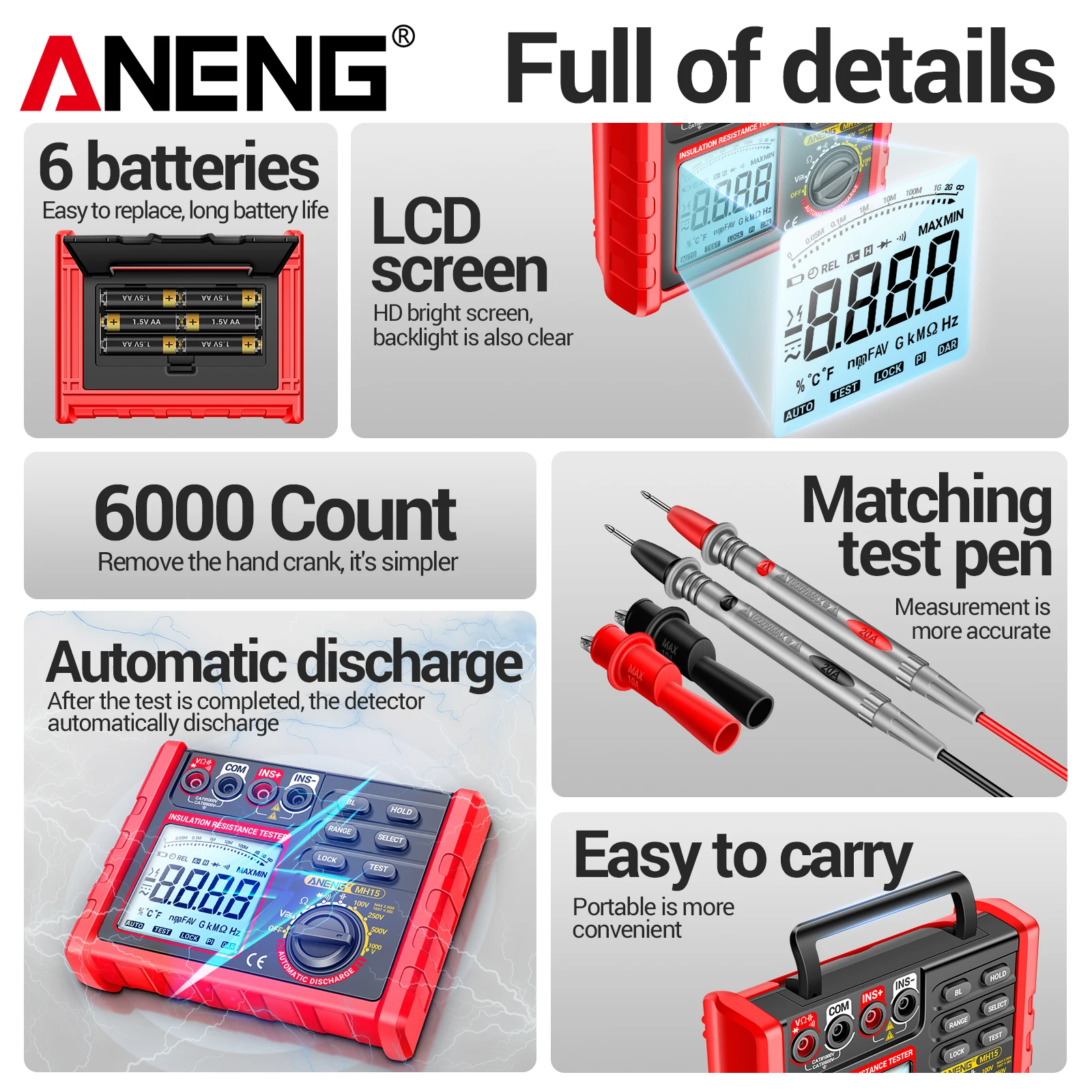 aliexpress , ali , shop , ali shop , online , store , online shop , online store , buy , sell , ANENG MH15 Professional Digital Insulation Tester AC DC Voltage Detection Discharge Function High Precision Measurement